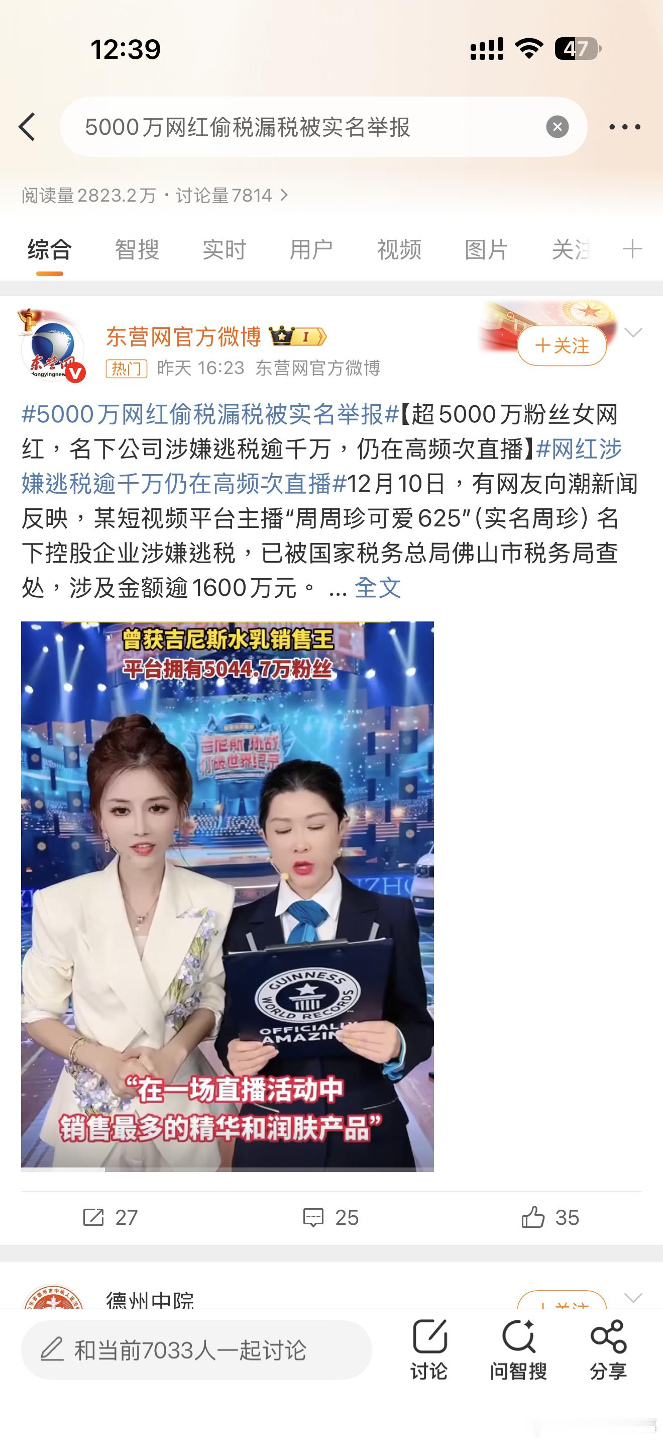 5000万网红偷税漏税被实名举报 顶流网红陷税务风波!拥有5000万粉丝的“周周珍可爱625”(实名周珍)被曝名下企业少缴税款超1659万元,遭税务部门罚款829万余元,处罚决定早在今年9月已公示。令人费解的是,该网红不仅未停播,还在为“双十二”促销预热,直至举报发酵后才取消原定直播。作为公司99%持股的实控人,其名下企业通过账簿不列或少列收入逃税,而税务部门“穿透式”监管早已明确,网红若通过空壳公司混同财产,需直接承担纳税责任。顶流光环下更该坚守法律底线,这场“一边被罚一边捞金”的争议何时落幕?网红逃税仍直播税务穿透式监管