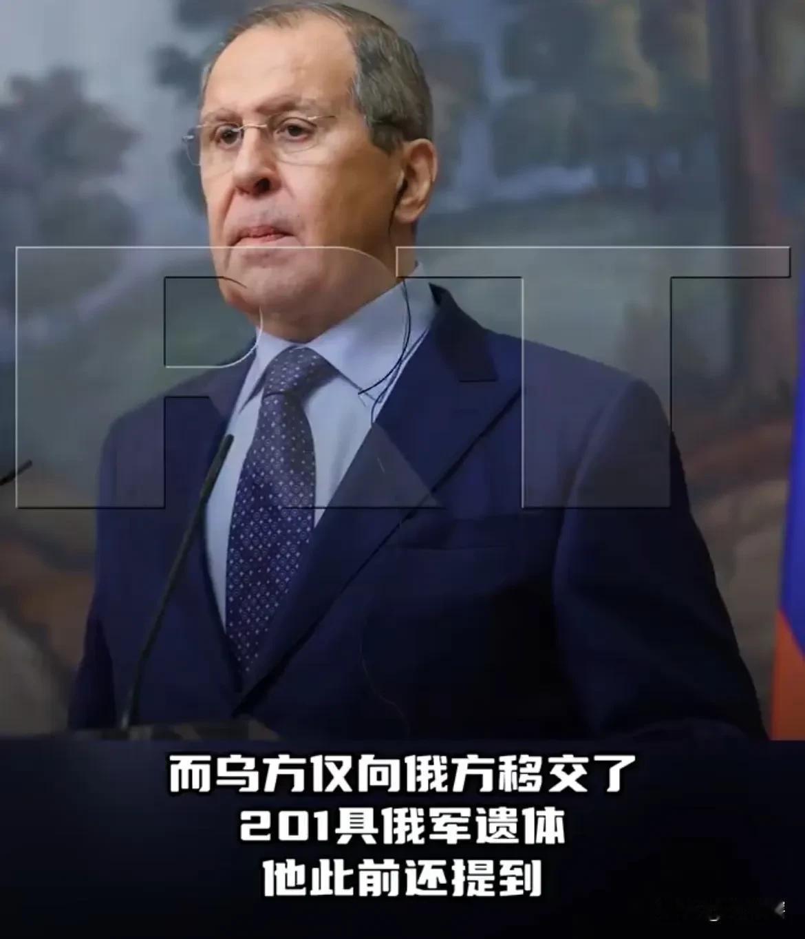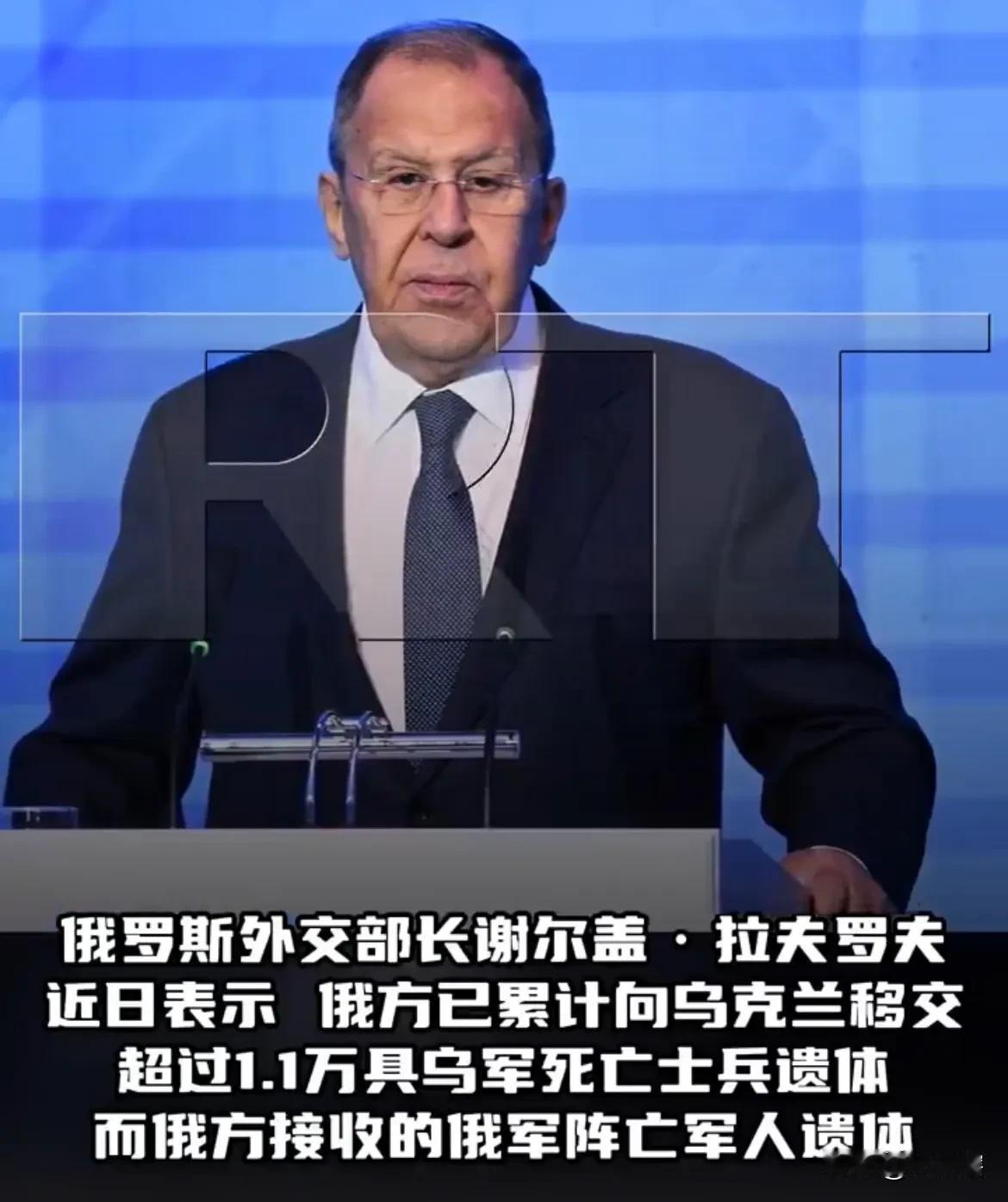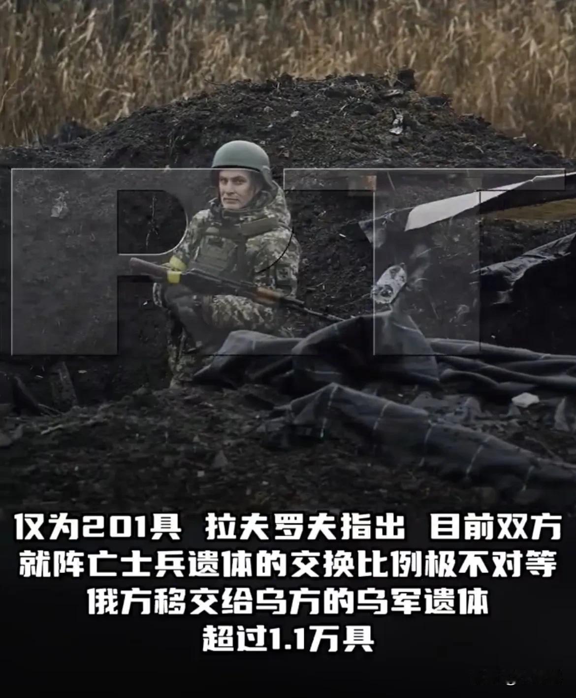 【拉夫罗夫称俄乌阵亡士兵遗体交换比不对等】 据今日RT消息,俄罗斯外长拉夫罗夫近日表示,截至目前俄罗斯已向乌克兰移交了1.1万具乌军阵亡士兵遗体,而乌克兰仅移交了201具俄军阵亡士兵遗体,交换比例极不对等。 拉夫罗夫还表示,自从俄乌冲突爆发以来,乌克兰损失了近百万名士兵,这是灾难性的损失。 从双方阵亡士兵遗体交换数据看,双方交换比例达到惊人的55:1,一定程度反映出战场的激烈状态。