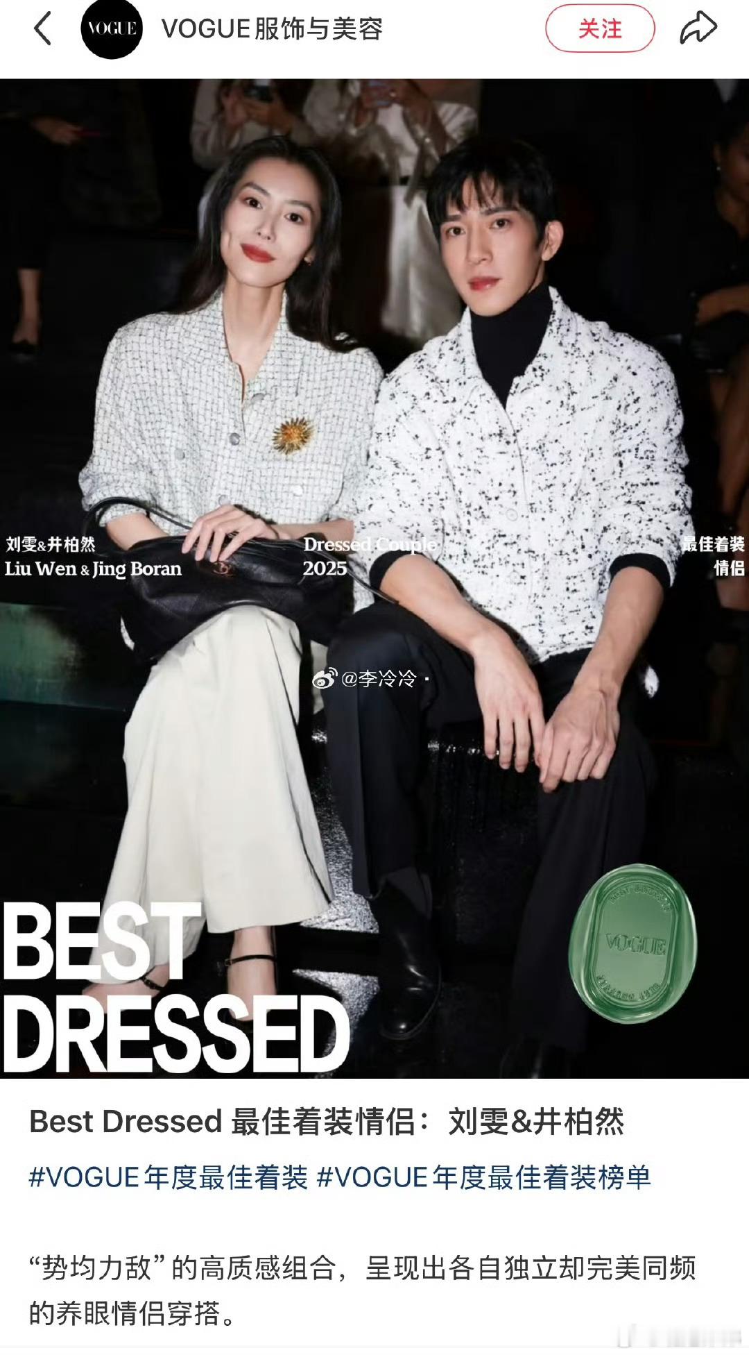 VOGUE替刘雯井柏然官宣了 虽然大家都默认刘雯井柏然在恋爱了!但真不理解,为什么一直不愿大大方方认爱啊,给彼此一个公开的身份不行吗?