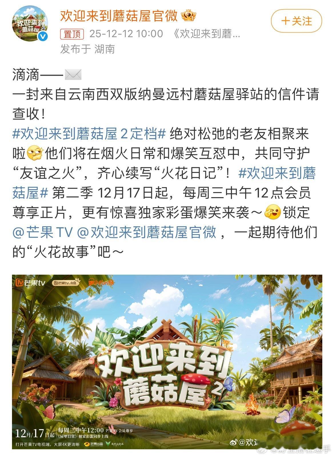欢迎来到蘑菇屋2定档又有下饭综艺看了!《欢迎来到蘑菇屋2》终于定档了!12月17日中午不见不散啊啊啊欢迎来到蘑菇屋