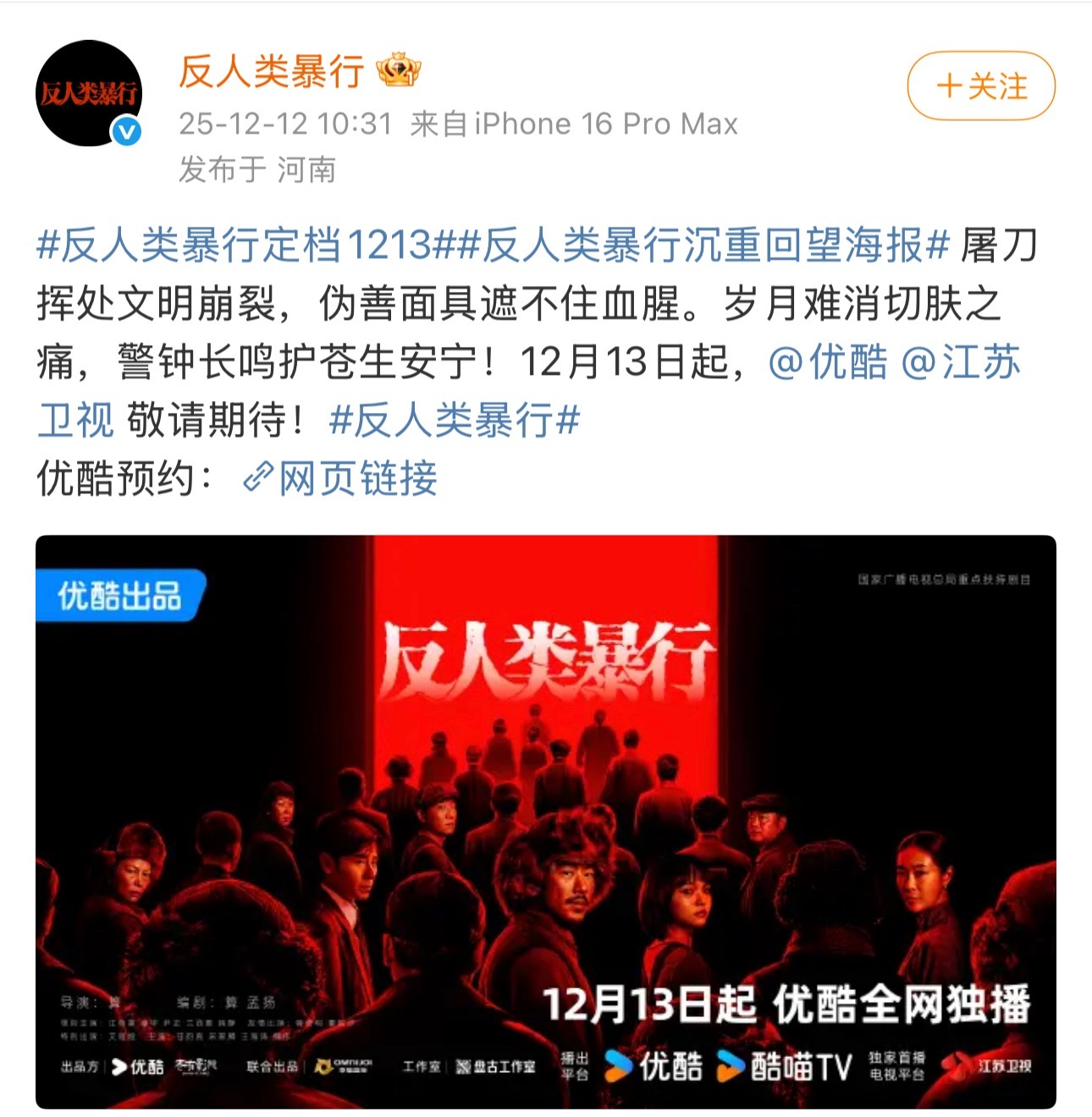 反人类暴行,今天官宣今天定档,明天就播。12月究竟要上多少剧??!!
