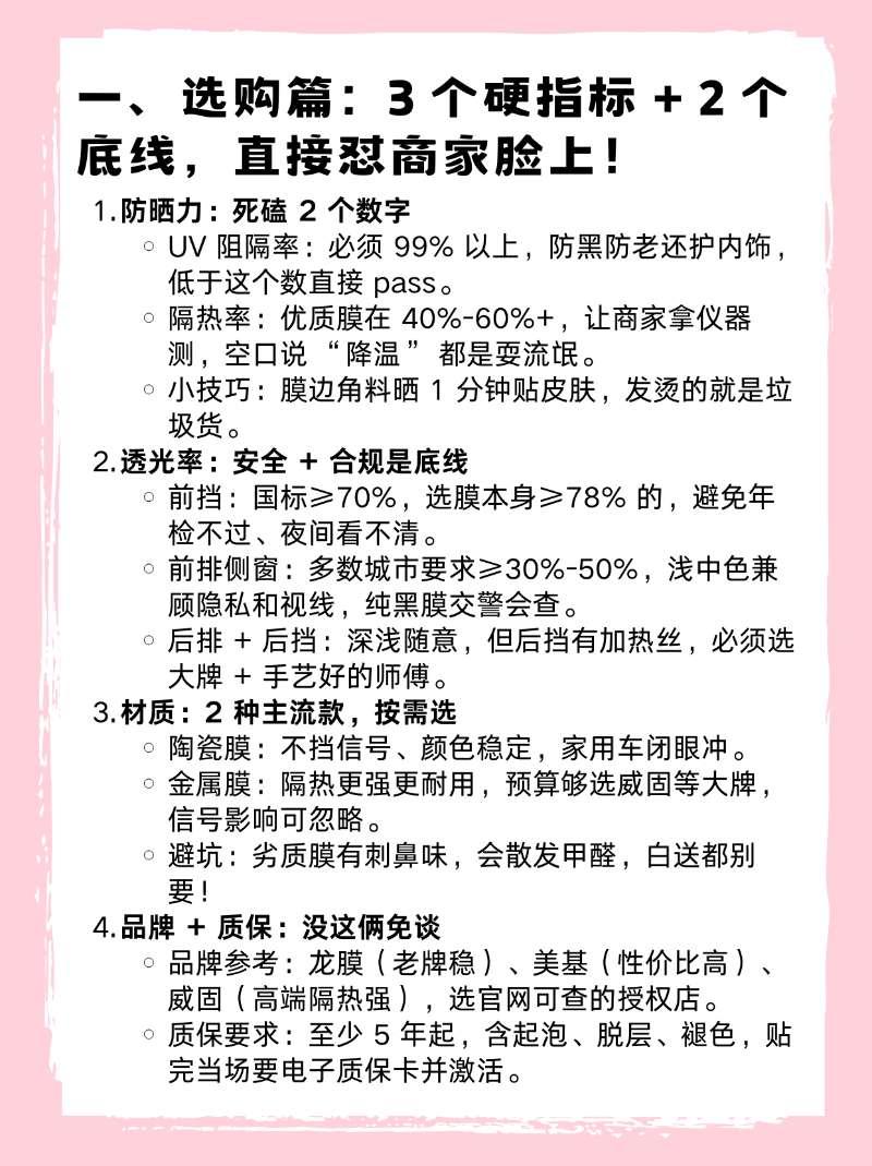 贴车窗膜前没刷到这些!我后悔哭了 一、基础认知篇:这些底线别破! 1️⃣ 紫外线
