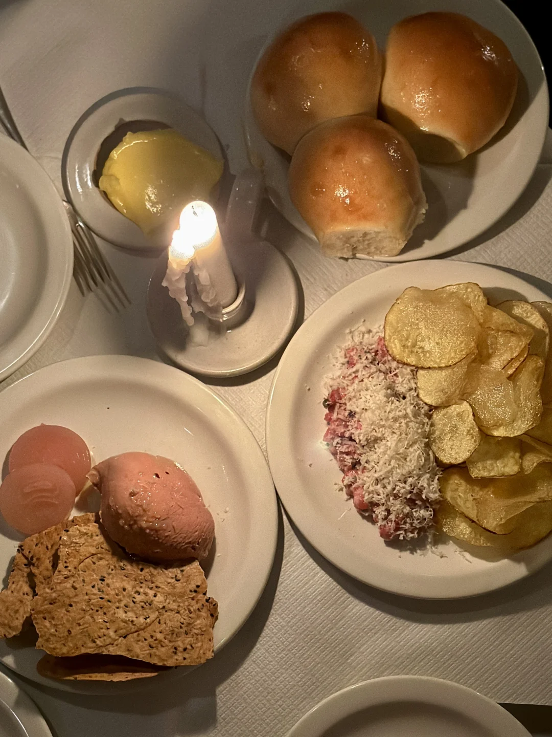 - Chopped beef,个人感觉是改良版生牛肉嗒嗒+芝士碎配油炸薯片。不健康但好吃。这道做法最近在伦敦风靡。是好吃的,但我会更喜欢传统版。