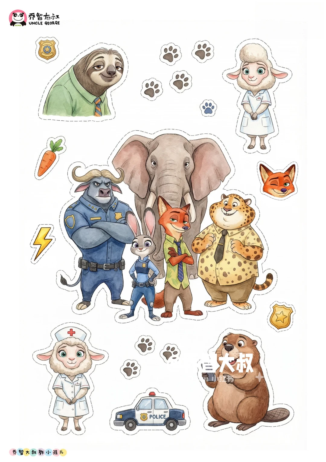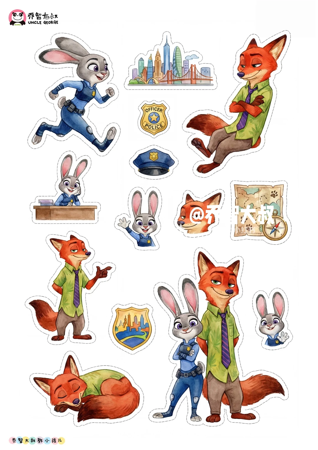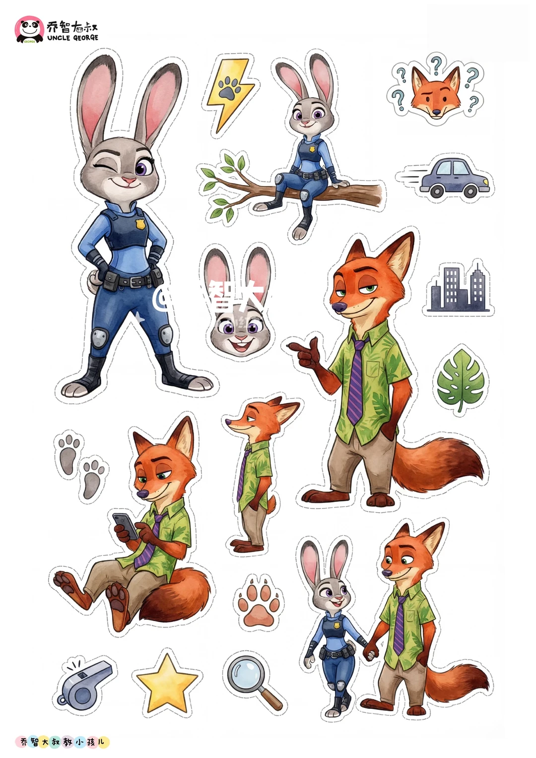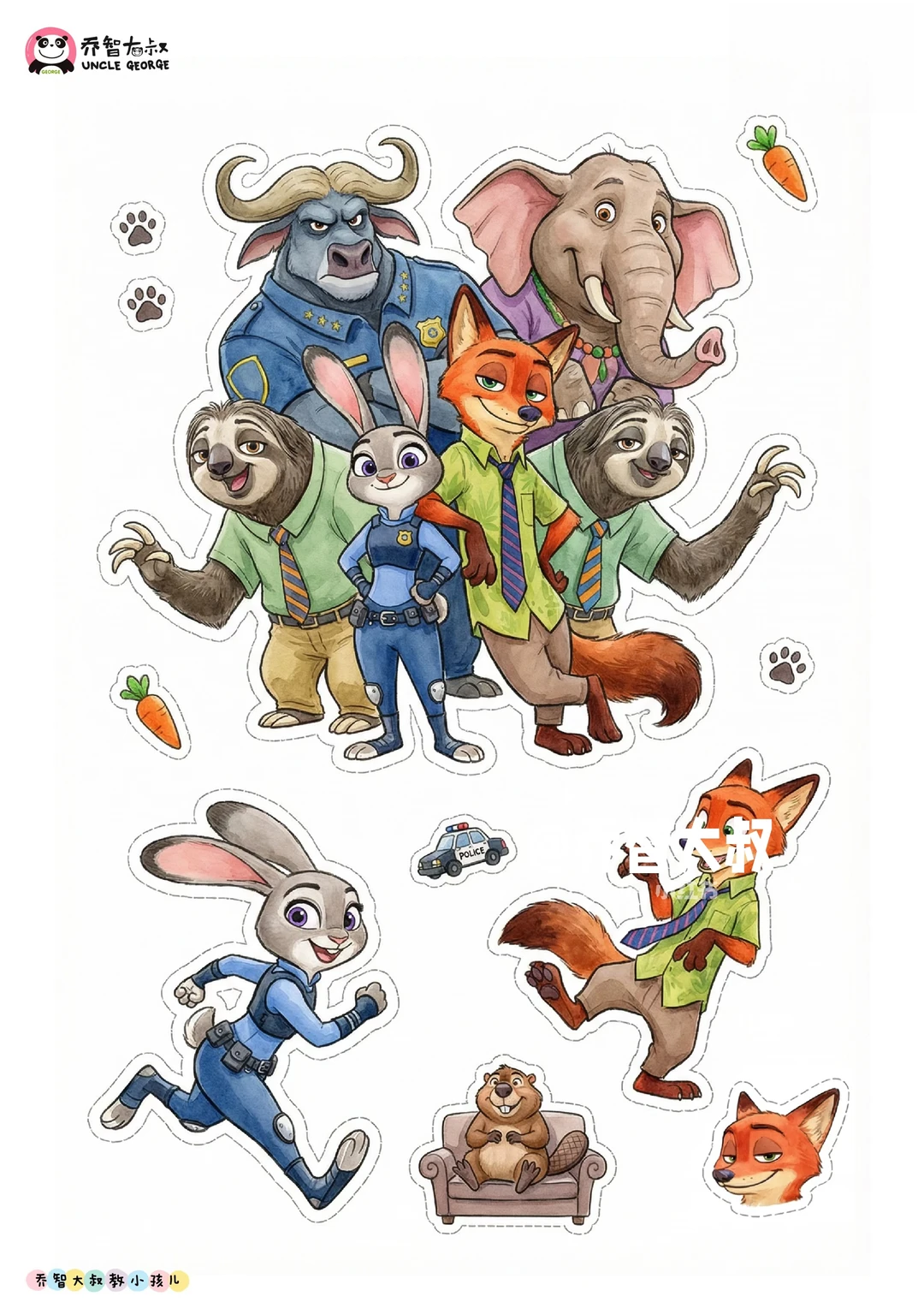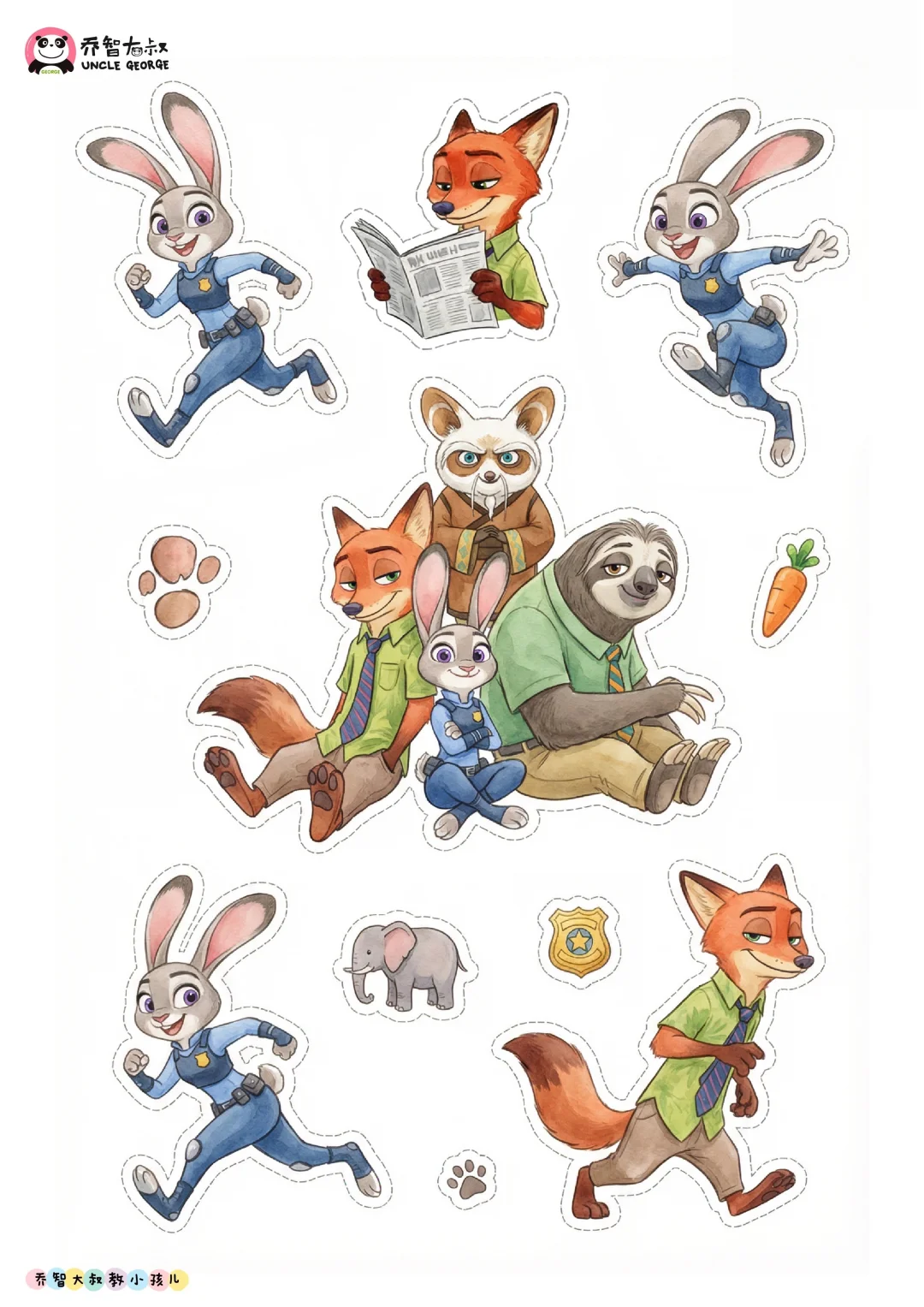 看完《疯狂动物城》孩子们对里面的每个角色依然是念念不忘 为此,我们特别设计了一套《趣味剪纸画》让孩子们在剪剪贴贴中重温动物城的温暖与勇气 这套素材,不仅关注孩子的动手能力更注重在趣味中融入语言学习情绪表达与逻辑启蒙 在剪纸过程中孩子可以复述台词编排小故事甚至自己设计剧情动物城的故事由他们来延续