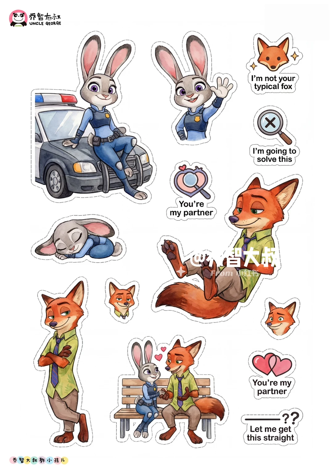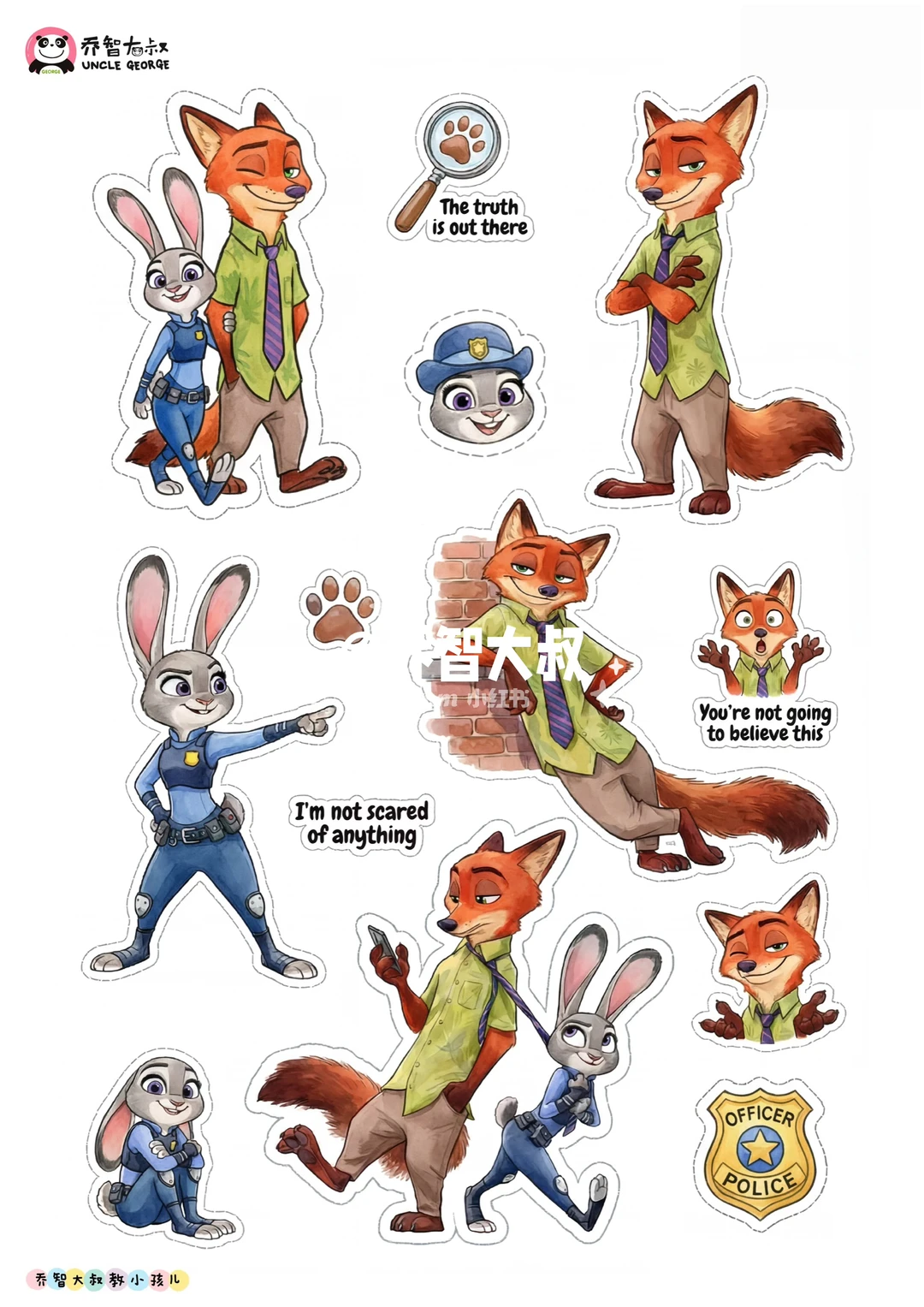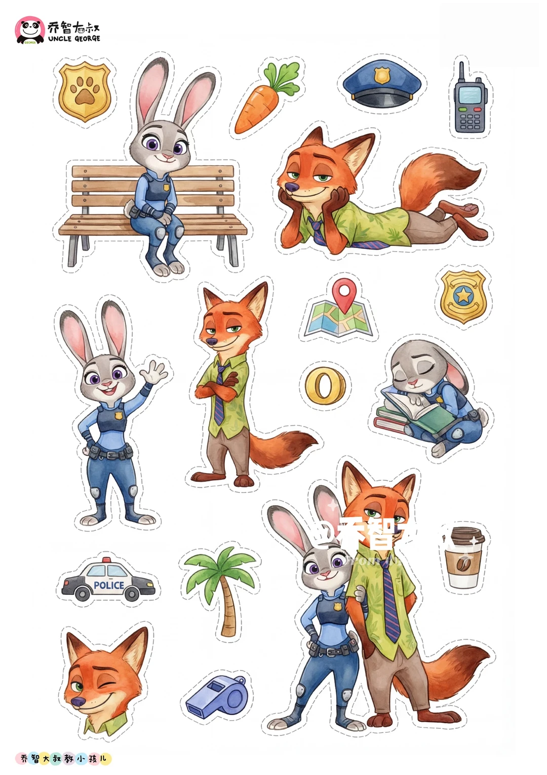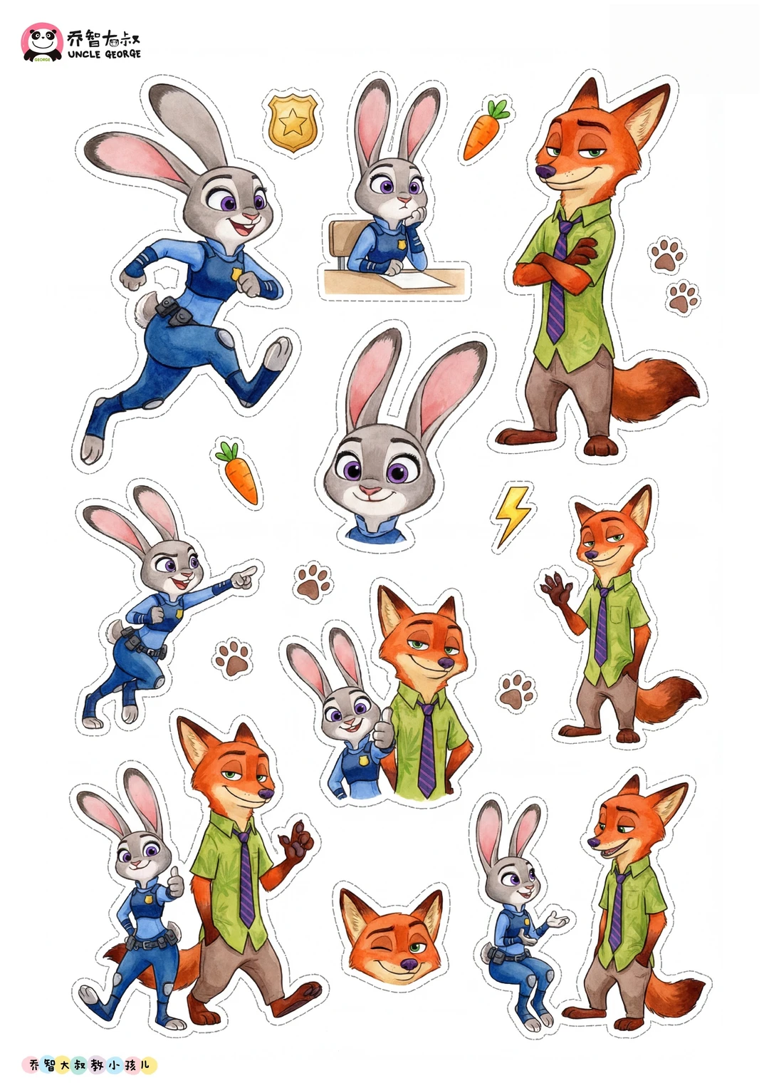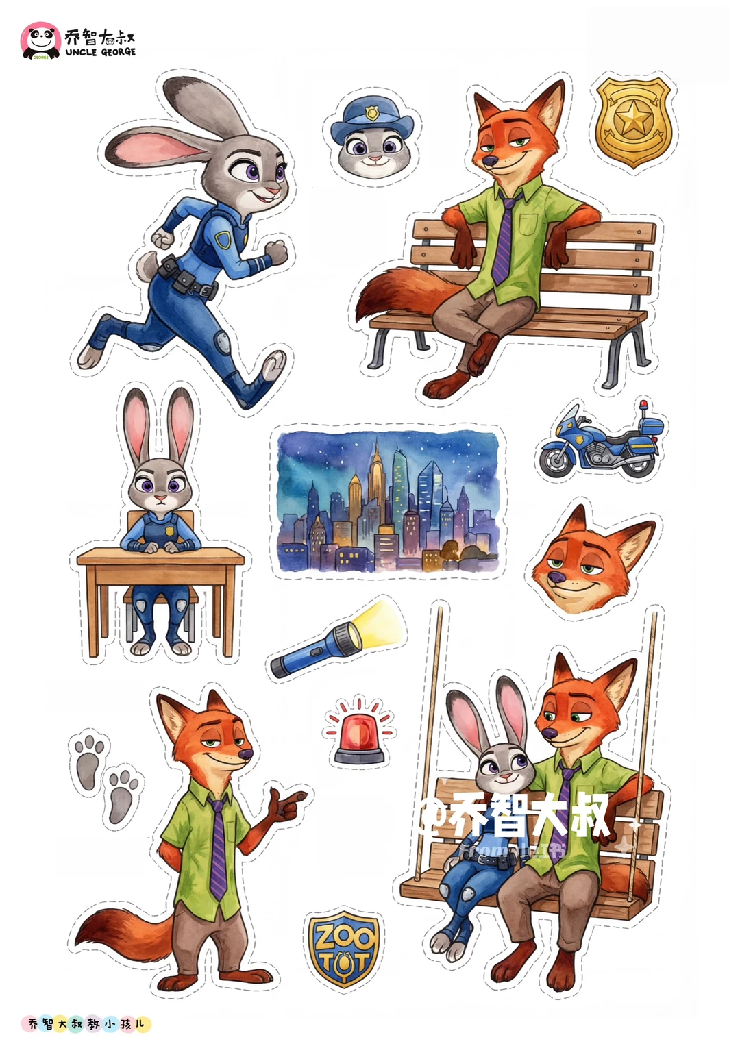 看完《疯狂动物城》孩子们对里面的每个角色依然是念念不忘 为此,我们特别设计了一套《趣味剪纸画》让孩子们在剪剪贴贴中重温动物城的温暖与勇气 这套素材,不仅关注孩子的动手能力更注重在趣味中融入语言学习情绪表达与逻辑启蒙 在剪纸过程中孩子可以复述台词编排小故事甚至自己设计剧情动物城的故事由他们来延续