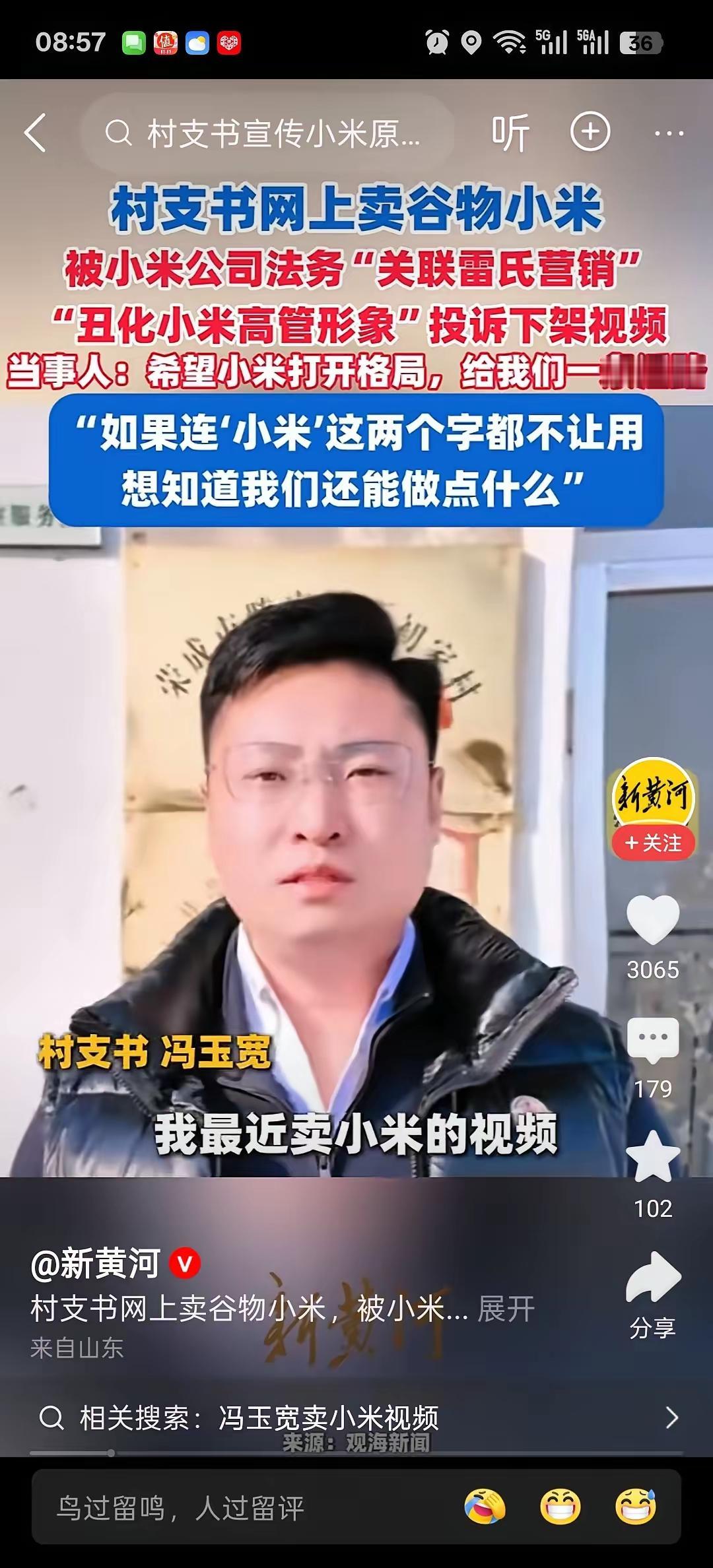 村书记帮助村民 网上销售小米 买小米被小米投诉 因为小未注册了商标 以后几千年的小米 要改名字啦 被小米投诉下架视频 农民的活路在哪 有什么看法,请朋友们支招!