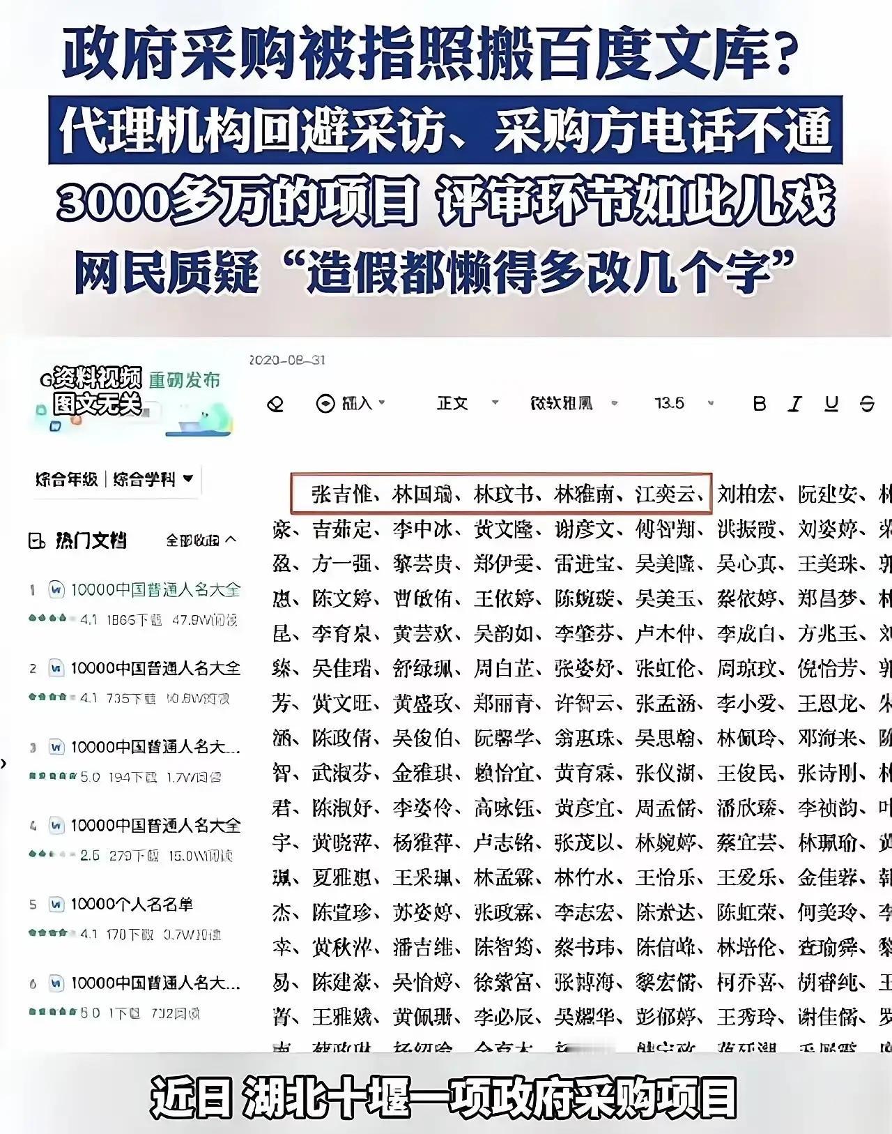 最忙五人组是愈演愈烈!近期大家都在围观的一部连续剧,主角是:张吉惟、林国瑞、林玟书、林雅南、江奕云。这五位,堪称“跨界天团”。 他们刚在湖北某个县,评审完三千多万的政府大项目;转头名字就出现在辽宁,成了街边违规摆摊被罚的小贩。上一秒还是包揽全国书法大赛特等奖的“艺术大师”,下一秒就变成少儿春晚的报名选手。绝的是,连大学里的贫困生助学金名单、公司光伏项目的村民备案表。好家伙,这五位都成全能高手了。 这事儿刚出来大家就觉得不对劲了。这就是一面“照妖镜”,照出了一些地方和单位——刀郎的罗刹海市。 你想啊,这些名字可是直接从某个《人名大全》文档里,按顺序“复制粘贴”过来的,连顺序都懒得打乱!敷衍到了什么地步?这就好比学生抄作业,连人家名字和学号都一起抄上了。这么明显的破绽都能一路绿灯,通过层层审核,最后赫然挂在官网的公示栏里,简直是对公众智商的嘲讽。这背后暴露的,是某些工作人员把严肃的公示、评审程序,完全当成了可以随意糊弄的“走过场”。 更让人细思极恐的是,这敷衍的背后,会不会藏着别的东西?评审专家是假的,那招标过程能是真的吗?助学金名单是虚构的,那真正的资助款流向了哪里?(出来解释说没资助现金,只是物品。)物品不用钱购买吗?也不知道是想表达什么? 再说光伏项目,村民是“空气人”,那国家的补贴又进了谁的口袋?五个凭空出现的名字,像一把钥匙,不小心插开了一扇可能藏着“猫腻”的门,让公众不得不怀疑:那些我们看不见的环节,到底还有多少这样的“隐形人”在帮忙洗白流程、套取利益? 最近有媒体顺着线索往下扒,结果更惊人。在某个省的职称评审通过名单里,一大串名字都跟网上那个人名库对得上。这说明,“复制粘贴”式造假,恐怕已经不是个别地方的“行为艺术”,而成为一种需要警惕的普遍性痼疾。 “最忙五人组”的连续剧,该大结局了。治这种病,就得用“阳光”这味猛药。一方面,问责的板子必须实打实地落下去,不能光是“诚恳道歉”和“下不为例”。还有那句“举一反三”。另一方面,得真正织密监督的网,让内部审核和外部举报都畅通起来。公示的目的不是“公示了就完事”,而是要让真正的群众看得见、看得懂,还能方便地提出质疑。 全社会都在看着,这出由五个假名字揭开的荒诞剧,最终会以怎样的方式收场。我们期待的,不仅仅是对这次事件的交代,更是一套能让所有“张吉惟们”彻底失业、让每一个名字都经得起推敲的扎实制度。