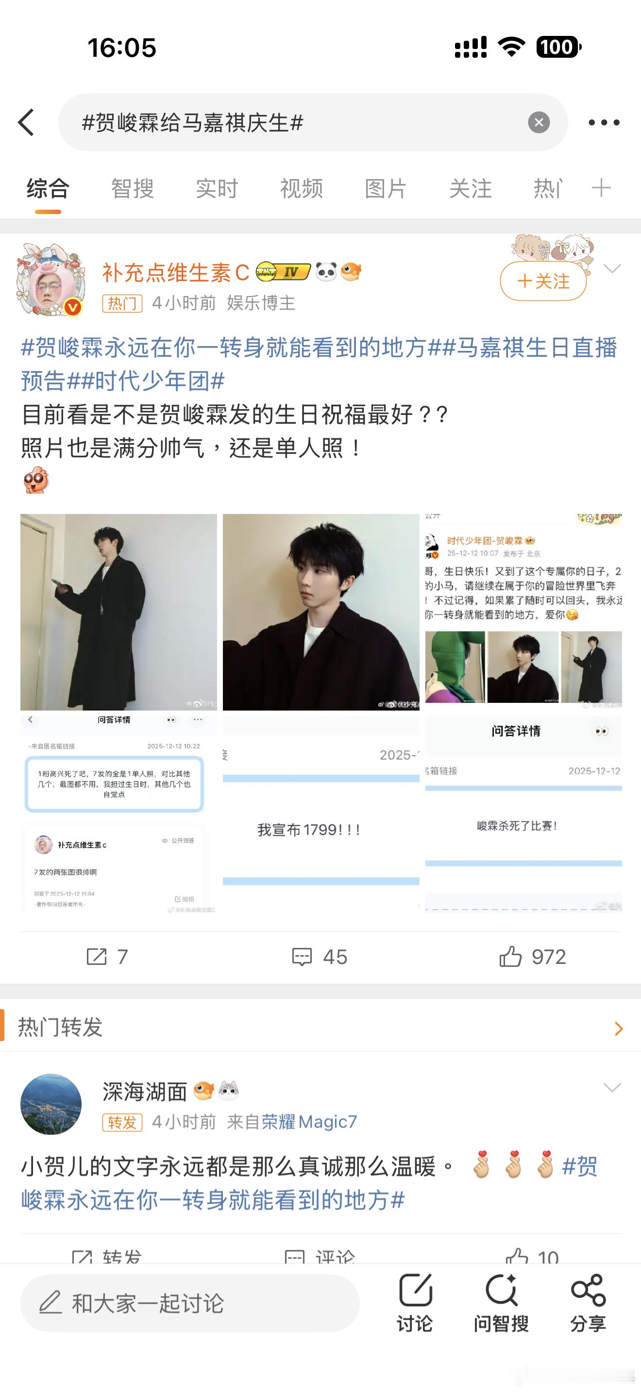 贺峻霖给马嘉祺庆生 又是一年陪小马过生日的日子!从珊瑚水岸的初遇问候,到并肩多年的默契相伴,你永远是能让我安心的存在,也永远是我心里最可爱的小孩~ 新的一岁,愿你灵感爆棚、烦恼清零,吃饭香香、幸运满格,所有美好都如约而至!隔空碰杯,等我们线下好好相聚呀🥂