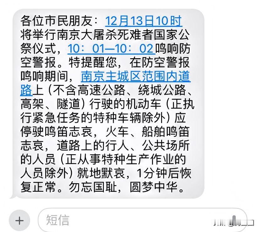手机收到一条短信, 12.13公祭日仪式, 怪不得孩子说老师讲的明天要默哀。 300000,这个数字刺痛多少人的心。 在爬紫金山的时候,有人说旁边有坟墓。我也没留意,只是看到一个小土丘。 我就说那我们快走,也不知道谁会埋在这里。 我老公就说应该是烈士。 听了之后我就放慢了脚步,我说那就没什么好怕的。他们是保卫国家牺牲的,不会害人。