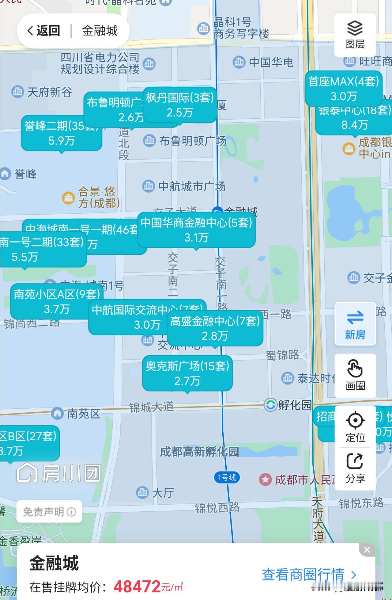 现在成都热卖最贵的新房就是高新南区的金融城8号,均价69295元/平,224-372平,单套价格1501-2554万,又是有钱人的游戏! 看附近二手房房价,大多在3万左右,只有少数几个盘的房价高的离谱,位置差不多,这么会差别这么大啊?