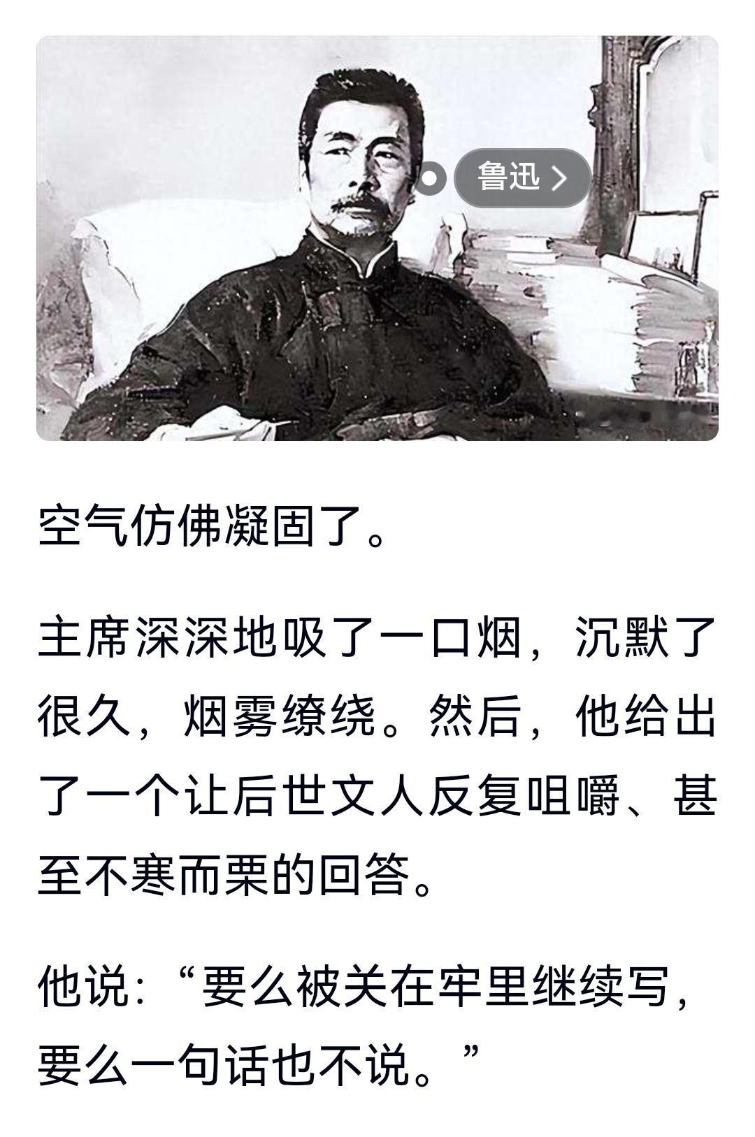 鲁迅先生如果活在当下,会不会闭嘴? 我的结论是,绝对不会!以先生“横眉冷对千夫指”的威武不屈性格,“敢于直面惨淡的人生,敢于正视淋漓的鲜血”真的勇士精神,是绝对不会低头闭嘴的。 《鲁迅书信集》(下卷)先生在1934年10月21日《致刘炜明》信中这样回复:“昨天我收到了来信。这几年来,短评我还是常做,但时时改换署名,因为有一个时候,邮局只要看见我的名字便将刊物扣留,所以不能用。近来他们方法改变了,名字可用,但压迫书局,须将稿子先送审查,或不准登,或加删改,书局是营业的,只好照办。” 可见,当时鲁迅先生的写作、发表、出版环境有多么凶险。但是,先生却从未畏惧,也没有就此搁笔,停止战斗。 是年11月12日,先生在回复箫军萧红的信中这样写道:“三、没有,大约此后一时也不会有,因为不许出版。 四、出过一本《南腔北调集》,早被禁止。” 当局连《南腔北调集》这样的杂文集都被禁止出版了,而一些公知却鼓吹民国时代所谓的言论出版自由,是多么荒谬了。 是年11月19日,鲁迅先生在回信金性尧时,写道:“惠函收到。但面谈一节,在时间和环境上,颇不容易,因为敝寓不能招待来客,而在书店约人会晤,则虽不过平常晤谈,也 会引人疑是有什么重要事件的,因此我只好竭力少见人,尚希谅。” 先生不但写作上不自由,就连人身也是不自由的,与朋友会面,几乎也和搞地下工作一样,时刻都得提防暗探甚至有被捕入狱的危险,因此租住法租界尽量少出门不出门也就不足为奇了。 是年12月初,鲁迅先生在回复刘炜明一信中,曾用较长的篇幅抨击了当局对进步作家的迫害与打压: “近来虽也化名作文,但并不多,而且印出来时,常被检查官删削,弄得不成样子,不足观了。倘有单行本印出时,当寄上,不值几个钱,无须还我的。 《二心集》我是将版权卖给书店的,被禁之后,书店便又去请检查,结果是被删去三分之二以上,听说他们还要印,改名《拾零集》,不过其中已无可看的东西,是一定的。 现在当局的做事,只有压迫,破坏,他们那里还想到将来。在文学方面,被压迫的那里只我一人,青年作家,吃苦的多得很,但是没有人知道。上海所出刊物,凡有进步性的,也均被删削摧残,大抵办不下去。这种残酷的办法,一面固然出于当局的意志,一面也因检查官的报私仇,因为有些想做"文学家"而不成的人们,现在有许多是做了秘密的检查官了,他们恨不得将他们的敌手一网打尽。” 由此可见,近年来网上谣传的伟人那段话,完全是个人臆想。以伟人对鲁迅先生的理解与推崇,绝对不会说出那样的话来。您觉得呢?欢迎大家在评论区留言探讨。