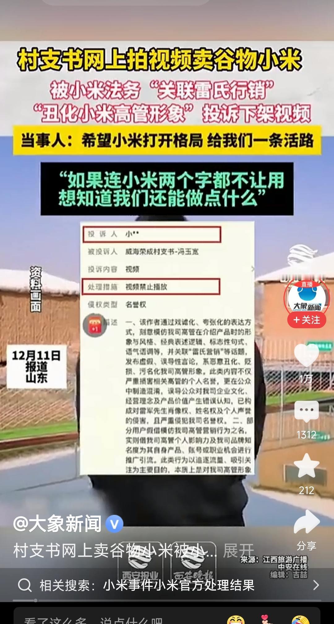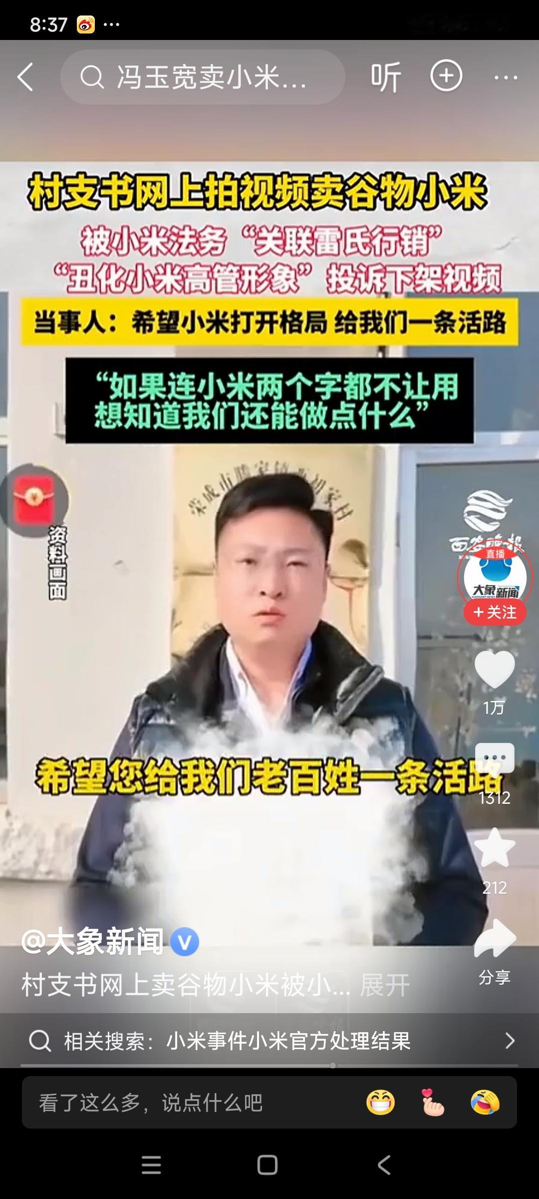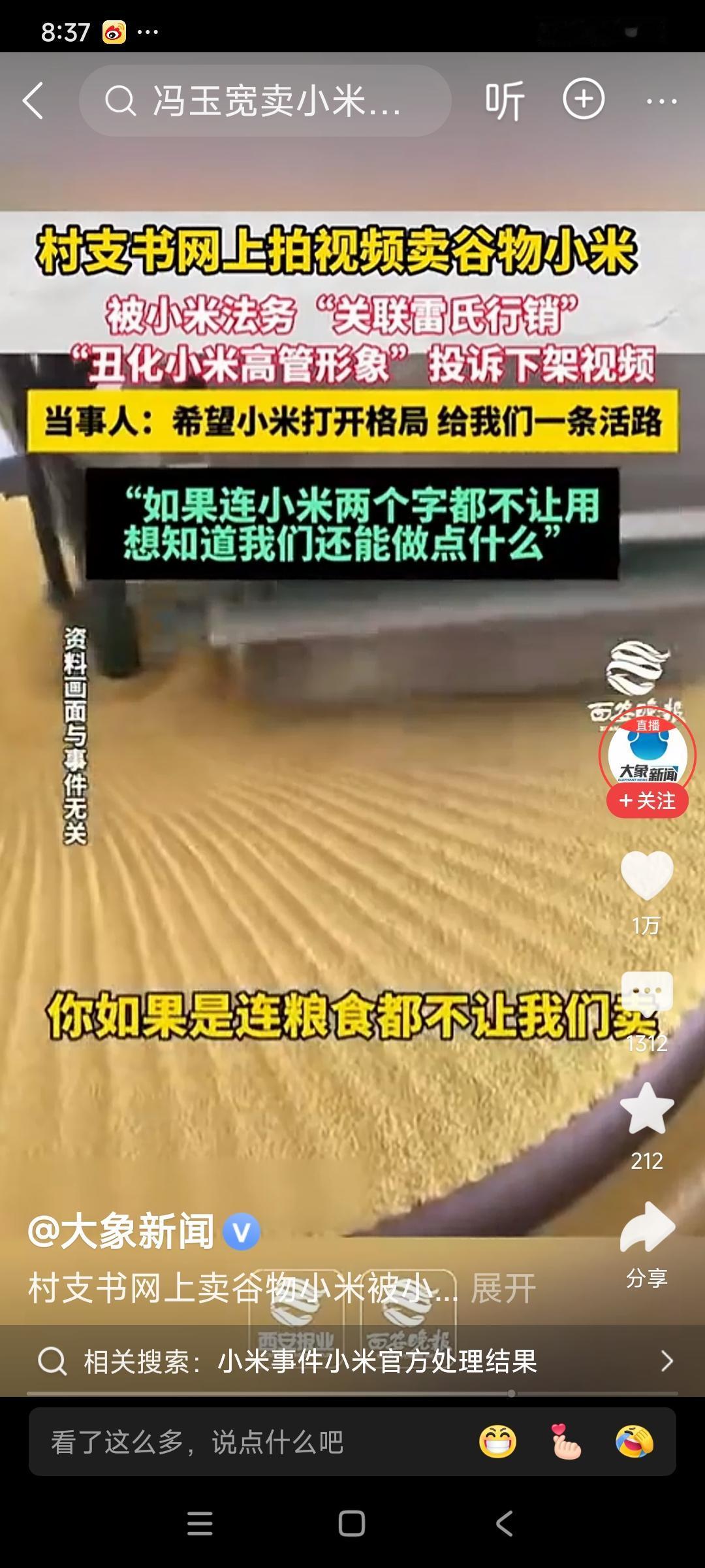 我虽然没看具体营销视频,但按法律常识,这法务是大仙水平啊!这简直是泛化法律概念吧!如果小米品牌涵盖小米谷物,那小米就是使用通用名称,应予以撤销。