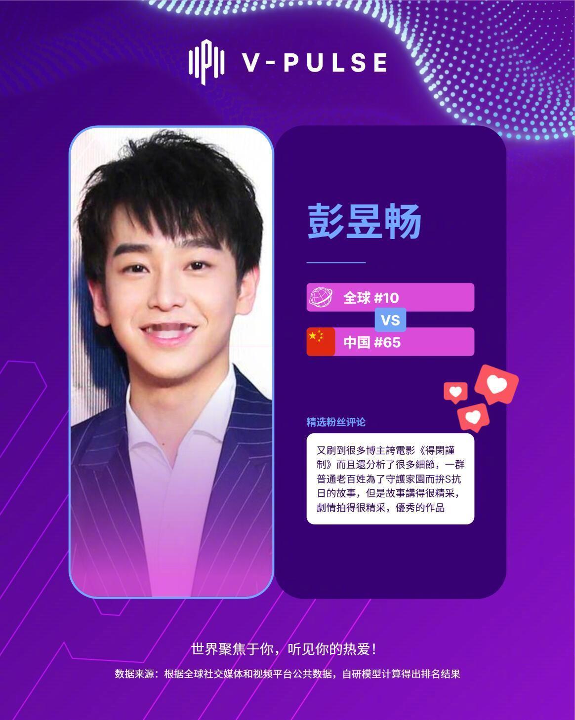 彭昱畅主演电影《得闲谨制》热映,带动海外讨论度上升,近期其海外热度跻身华语艺人国际排行榜TOP10。