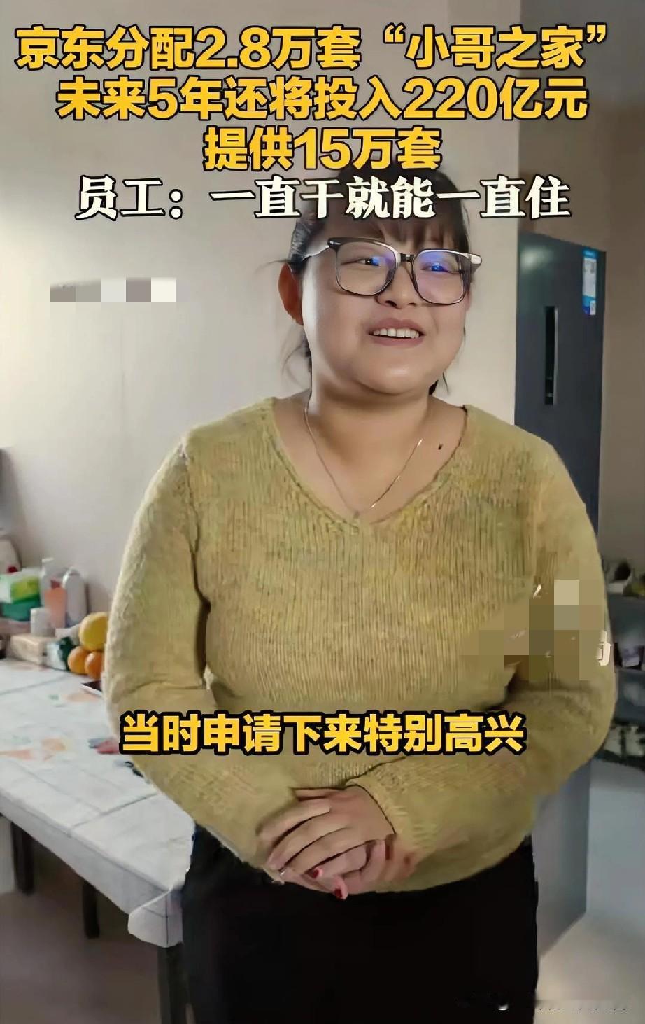 “太暖心了!” 朱红旗和陈若男两口子以前住村里出租屋,离送餐点远,冬天得穿小树林,冻得说不出话。 现在搬进通州的小哥之家,60平两居室有地暖,租金是周边一半,中午还能回来打个盹,孩子放假来住也宽敞。 京东现在已经给一线员工备了2.8万套房,覆盖145个城市, 据说未来5年还要砸220亿,再建15万套小哥之家,让20多万人住得更稳当。 从租房到自建,从基金支持到生活配套,把打工人的居住问题实实在在放在了心上。 这样的小哥之家,不就是咱普通人最想要的踏实日子吗?