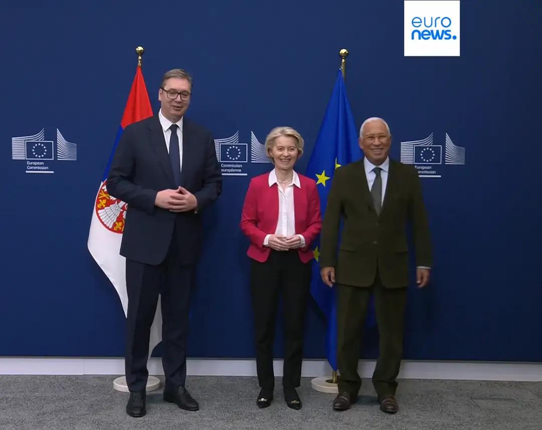 据报道,塞尔维亚总统武契奇在与欧盟官员会谈期间,与欧盟委员会主席冯德莱恩并肩而行,他突然低声说, “我刚收到莫斯科发来的消息。”冯德莱恩急忙打断。 塞尔维亚为了加入欧盟,融入欧洲,可以说和俄罗斯渐行渐远,甚至已经通过了向欧盟出口武器的法案,明知道武器可能会流入乌克兰手中,仍然出口。当然,这次不知道武契奇收到俄罗斯发来的什么消息?会不会泄密?