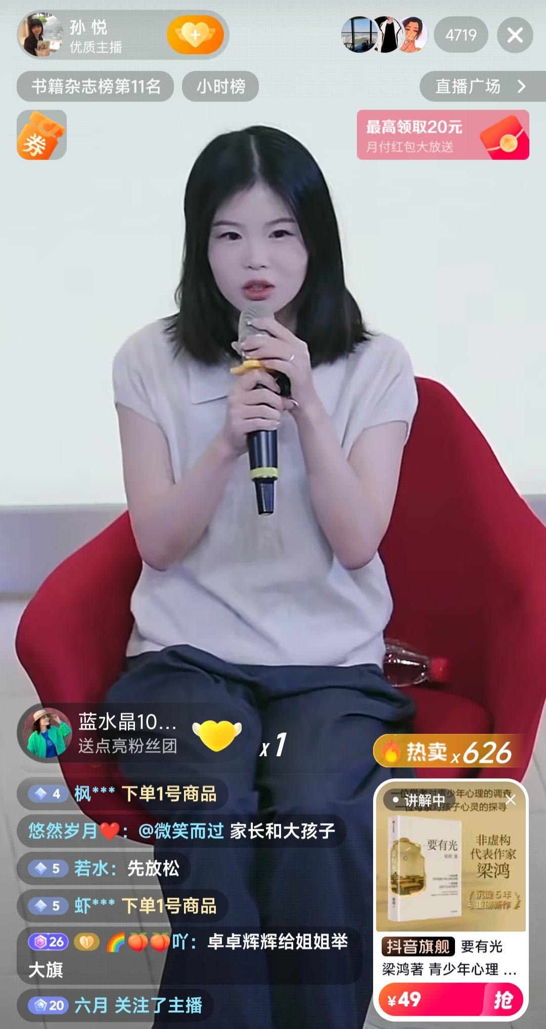 孙悦今天直播时候提问环节,台下有位男士开口说想问孙博士的问题,孙悦连忙谦虚的说,自己还不是博士,没有毕业。没想到,男士接下来继续喊孙博士,这下孙悦又继续解释,旁边的作家梁鸿都出面缓解,说孙悦是博士候选人,孙悦还想拒绝这个称呼,可能是她太谦虚了,也深知有点名气的读书人人,在互联网上的的确要谨小慎微,所以一直也都比较谦虚。但我个人觉得,这位男士其实有点唐突,甚至是没礼貌。 孙悦的优秀,已经是公开的了,有些人就是不愿意承认,对她各种挑剔,否认她的成绩,实力允许她高调,但是这个互联网的环境不允许。