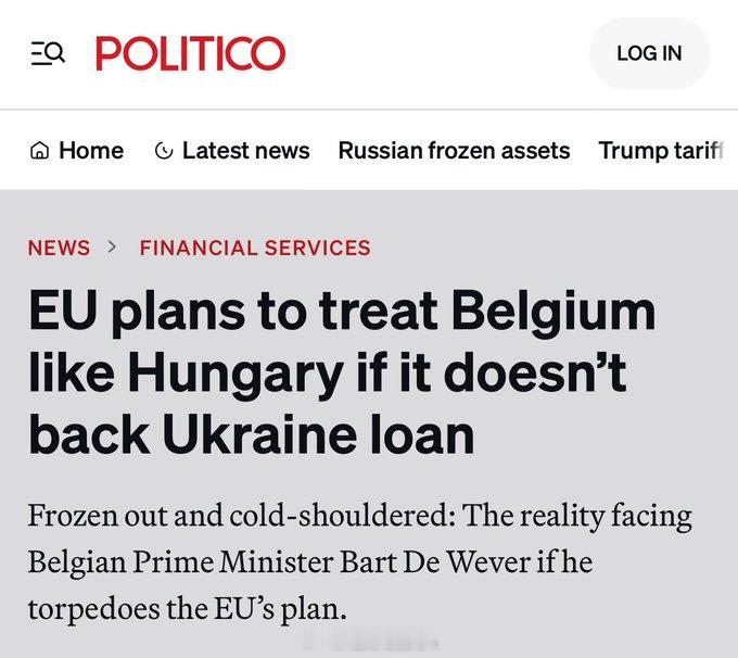 俄乌冲突 欧盟散伙前兆欧盟警告比利时说,如果比利时不顺从“乌克兰贷款计划”(使用被冻俄罗斯资产),那么,欧盟就会将比利时列入”匈牙利同伙”,享受欧盟对待匈牙利的手段。匈牙利,斯洛伐克,比利时,意大利等等欧盟已开始显现出自我毁灭的倾向。如果欧盟开始惩罚那些遵守欧盟所有规则并构成联盟核心基础的国家,这对欧盟自身来说意味着什么?不言自明。欧盟在乌克兰问题上对待成员国的做法,意味着欧盟已将其成员国降格为非主权成员,欧盟可以随意向这些丧失了国家主权的成员下达命令 —— 包括执行那些直接违背它们自身利益的行动。顺便说一句,就目前而言,这些欧盟成员国的主权甚至比美国的各个州还要少。也就是说,欧盟实际上是德法的欧盟,而不是欧洲的欧盟。现在看来,大英这个老油条。。。真的是实至名归。泽连斯基核心圈商人遭暗杀