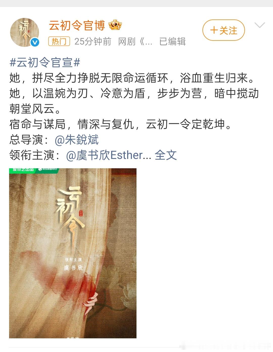 云初令官宣剧也官宣了,双轨也播了,🐟是彻底回宫了吧?