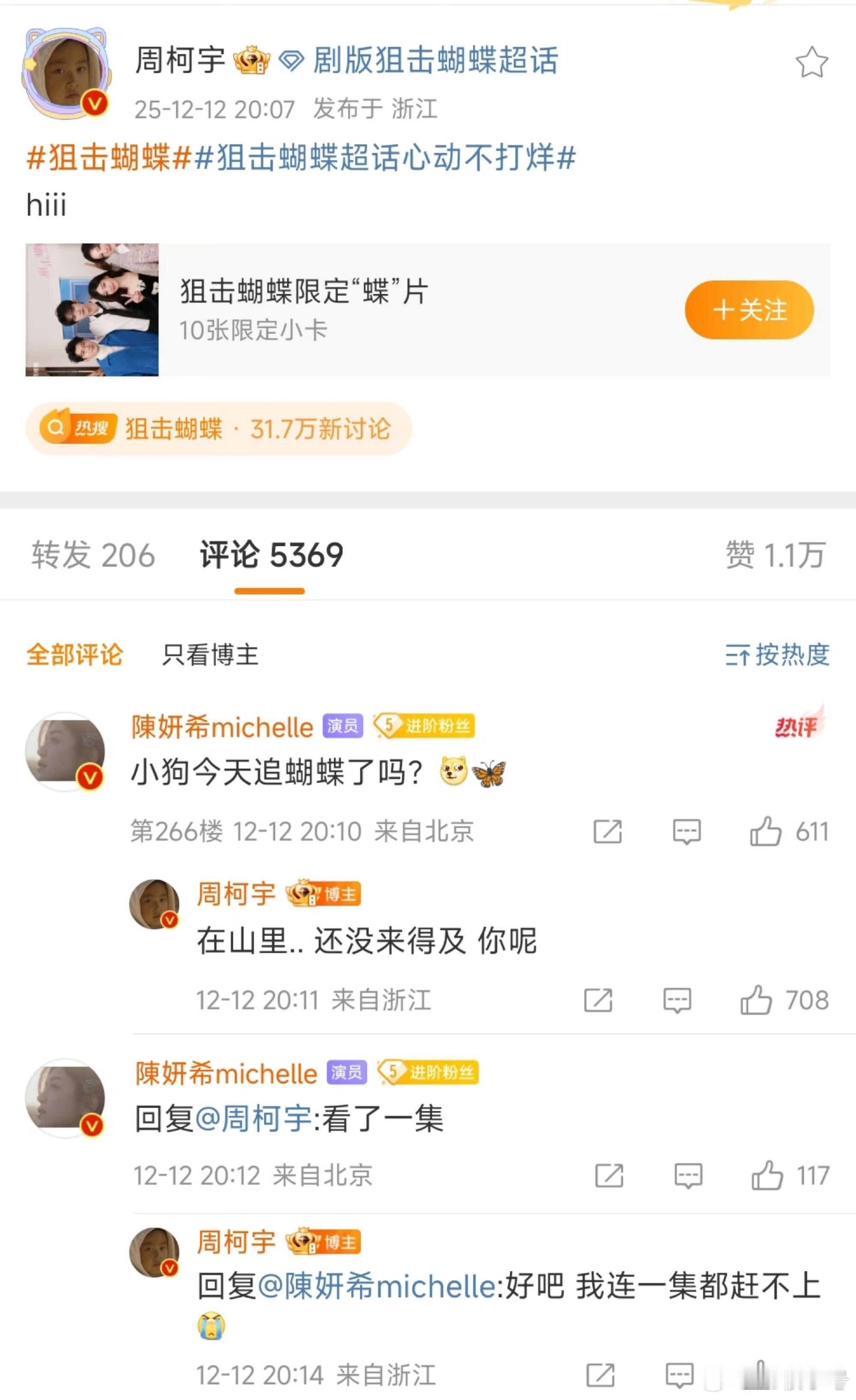 狙击蝴蝶我和我妹这两天的对话已经变成了——