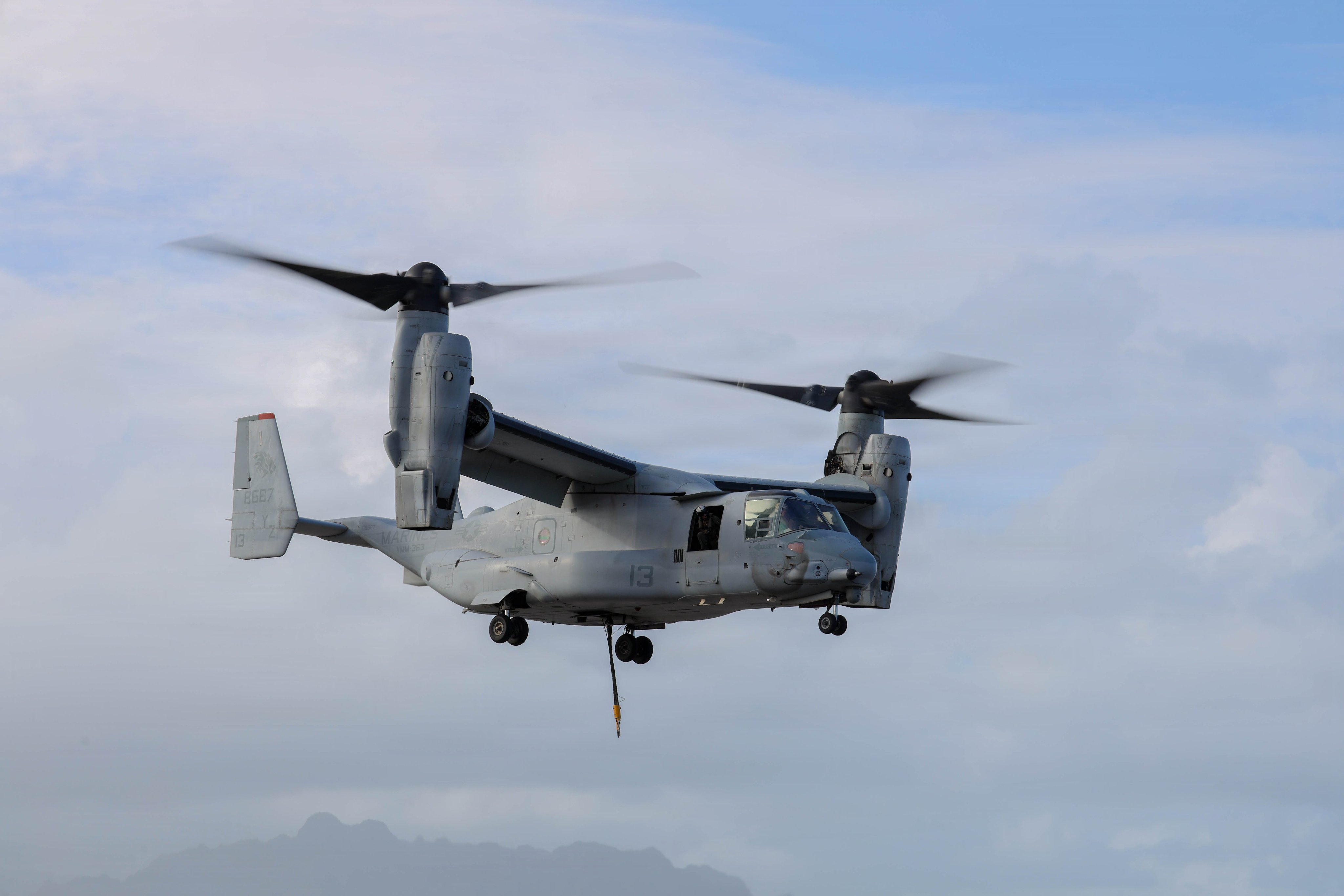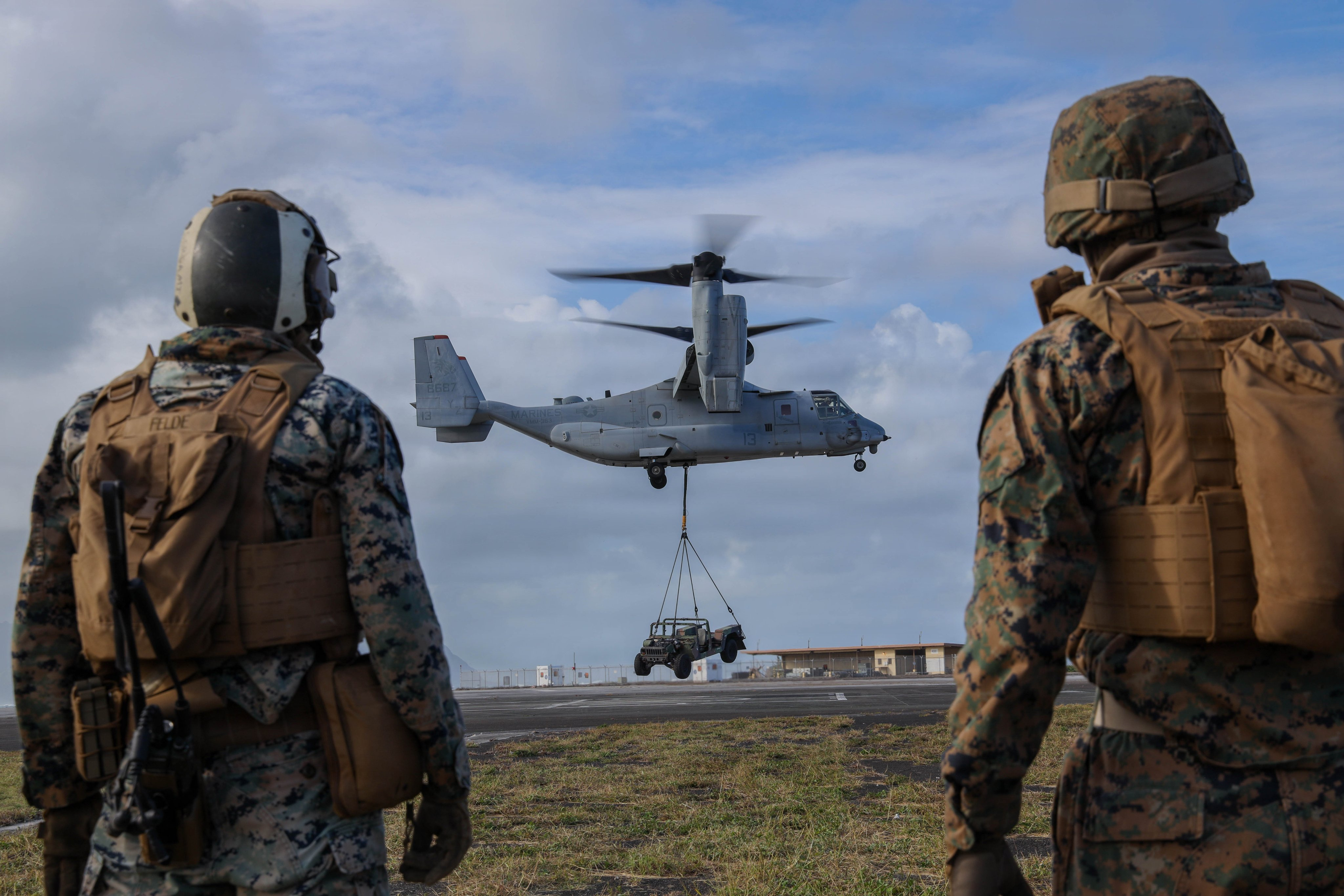 夏威夷卡内奥赫湾海军陆战队航空站MV-22B鱼鹰吊装作业