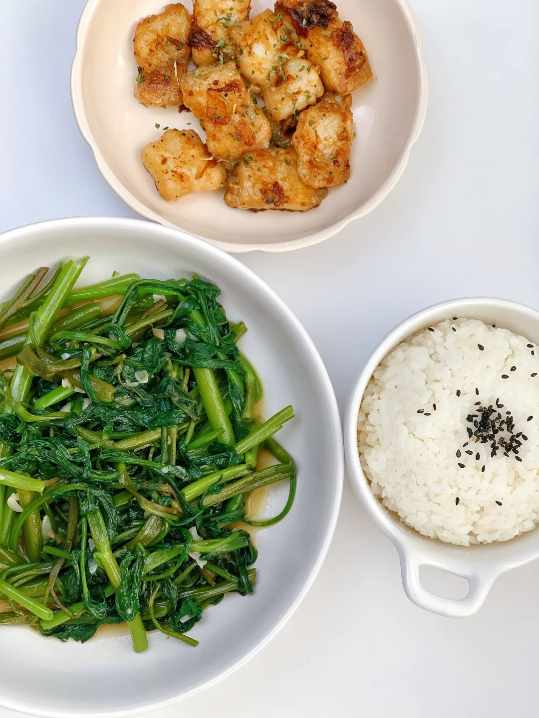 👩🏻🍳分享晚餐菜单 ➡️香煎龙利鱼 ➡️清炒空心菜(半翻车[笑哭R],虽然味道很赞) 主食:米饭🍚 ……………………………………………………………………………… 🛒清单:龙利鱼 | 空心菜 | 蒜🧄 翻车小日记[大笑R][大笑R][大笑R] 小tips:🆘空心菜的菜梗和菜叶分开,菜梗要开水加少许油和盐焯水10s(保持翠绿的原因)