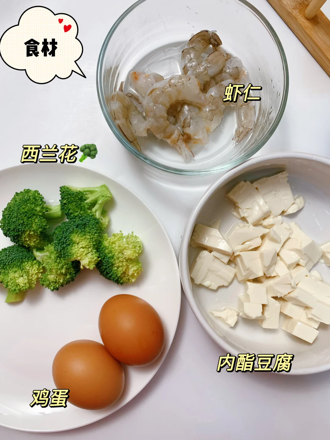 ✅虾仁:80kcal | 鸡蛋:70kcal | 嫩豆腐:50kcal 西兰花🥦:17kcal