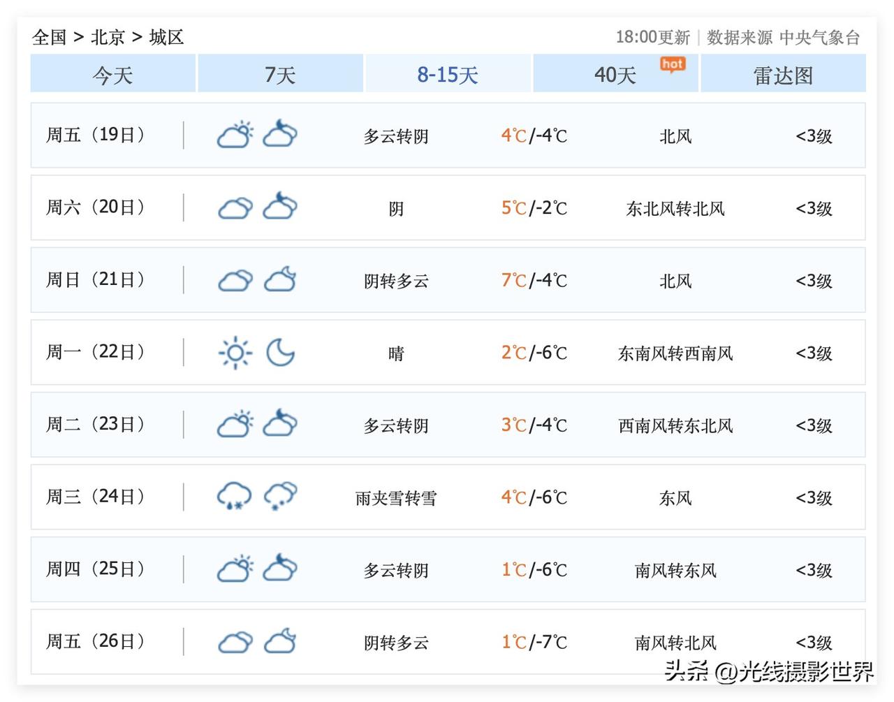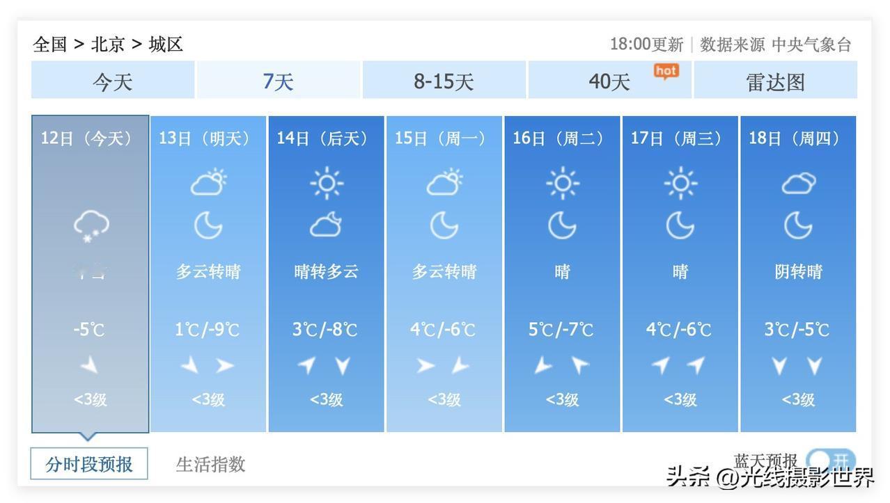 今晚,北京中雪!12月13日,星期六,北京多云转晴,雪后的北京故宫,万人攻打景山公园万春亭啊!颐和园,圆明园,天坛,北海公园……这个星期六,是摄影发烧友的天堂啊!全国各地,也有一些有钱有闲的超级摄影发烧友,连夜坐高铁飞机抵达北京,去不了故宫,那就去景山公园……哈哈哈! 好吧,12月24日,北京市有望再次下雪,外地的摄影爱好者,可以开始计划啦! 紧密关注啦!