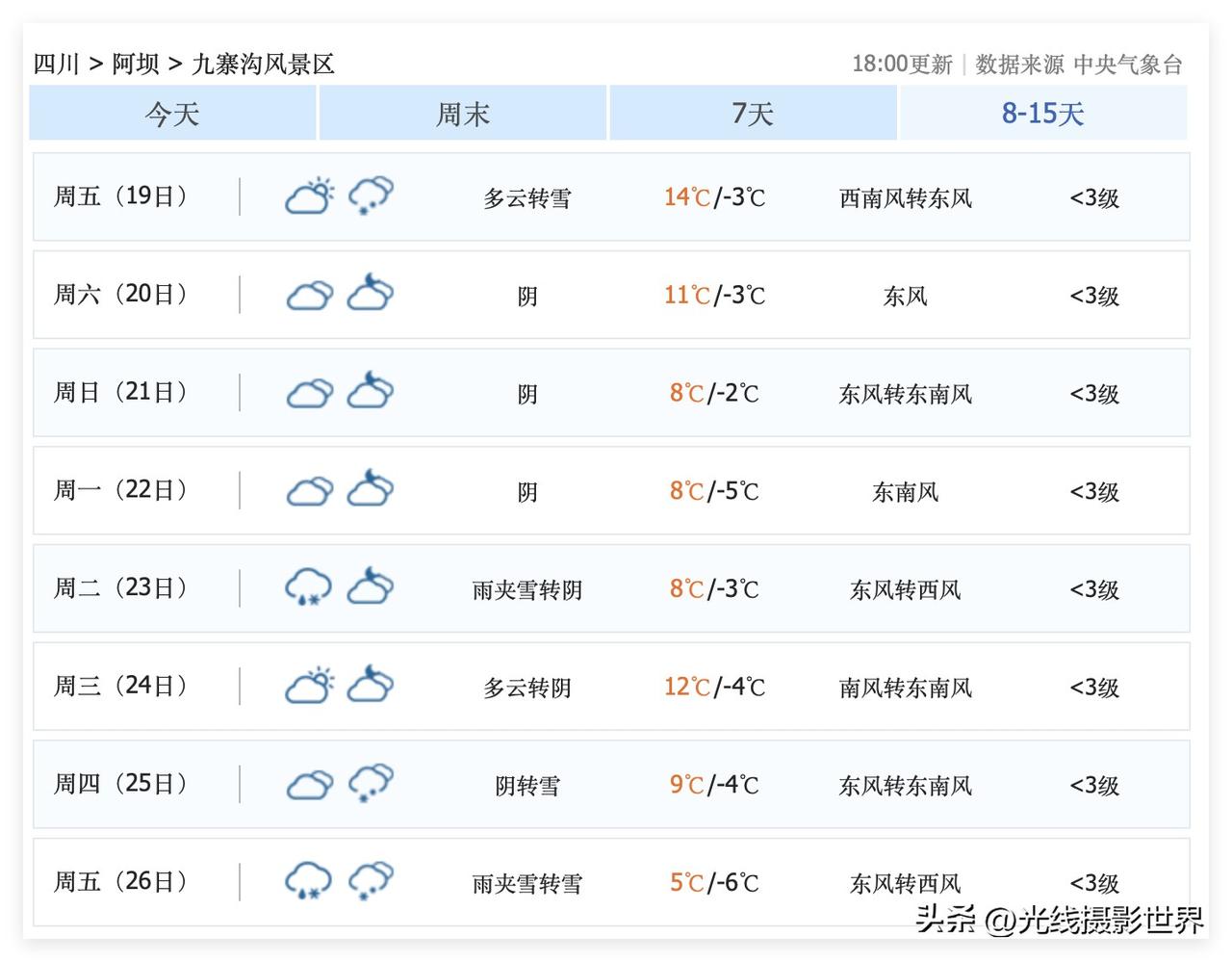 想要看九寨沟大雪的雪景的摄影发烧友注意啦!12月25日和26日,九寨沟的降雪概率,可能会比较高哦!哎呀!要十拿九稳才敢出发,毕竟,去一趟九寨沟不便宜呀! 九寨沟的雪景,确实是非常值得的,值得花钱啊! 重庆人,成都人,摄影爱好者,摄影发烧友,手机摄影爱好者……想要去看九寨沟雪景的小伙伴们,可以计划起来啦!