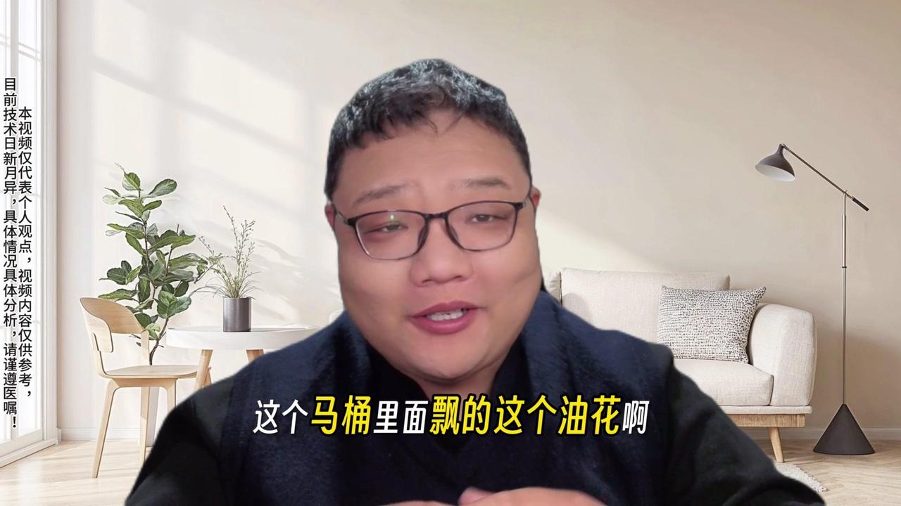 马桶油花=胰腺癌?别自己吓自己!💧马桶里的油花大多是肠道分泌的粘液,每天0.5-1升的量,像保护衣和润滑剂,半透明漂浮物很正常。 💧少量油脂残留也正常,肠道消化吸收脂肪会有未吸收部分排出,只要量少、偶尔出现就不用慌。 💧真正脂肪泻是大量油脂漂浮、大便油腻不成型、粘马桶冲不掉,还会持续出现,常伴随腹泻、腹胀、体重下降等症状。 💧胰腺癌导致的脂肪泻是中晚期症状,还会有腹痛、皮肤发黄、体重骤降,且发病率仅10/10万,别因一次油花就对号入座。 💡出现这些情况建议就医:油花持续两周以上、大便长期油腻冲不掉、伴腹泻/体重骤降/腹痛/皮肤发黄,别过度紧张哦。
