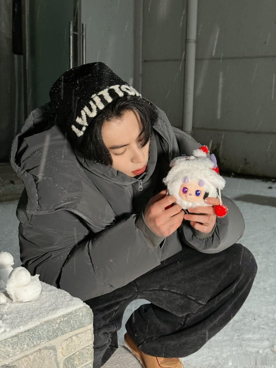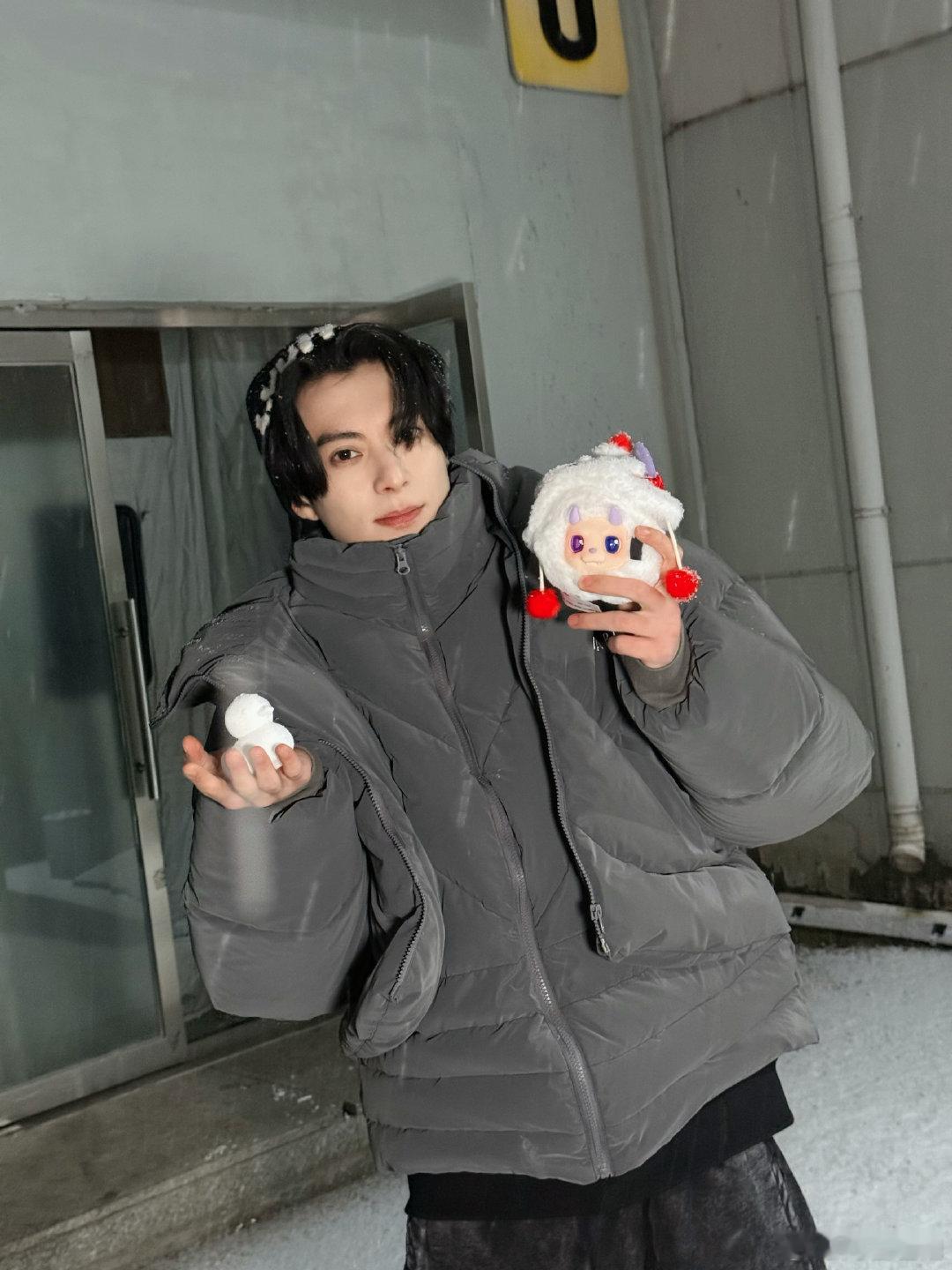 王鹤棣初雪营业🌨️今天这一身也太男大了!
