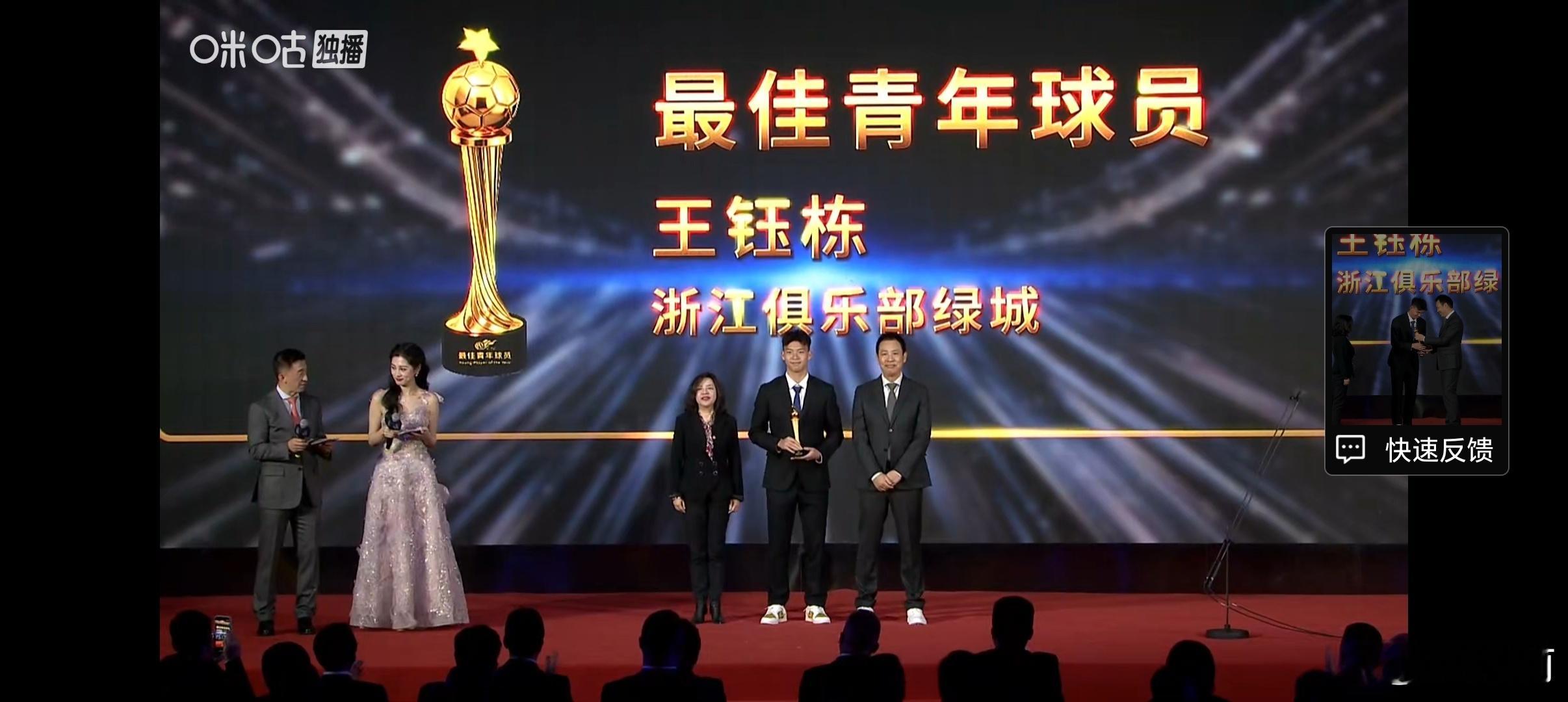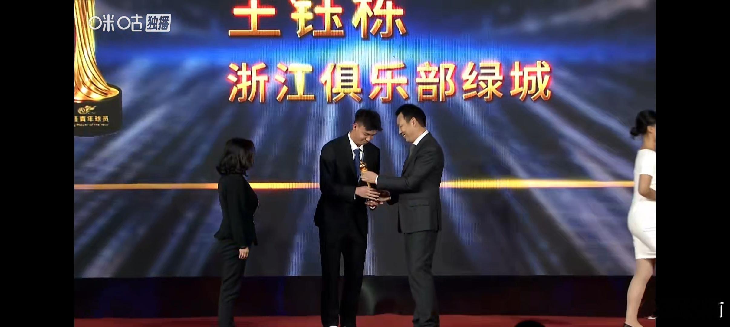 王钰栋2025中超联赛最佳青年球员2025中超联赛最佳裁判李海新 王钰栋实至名归,绝对没有争议了!这身西服上身,帅气十足啊!