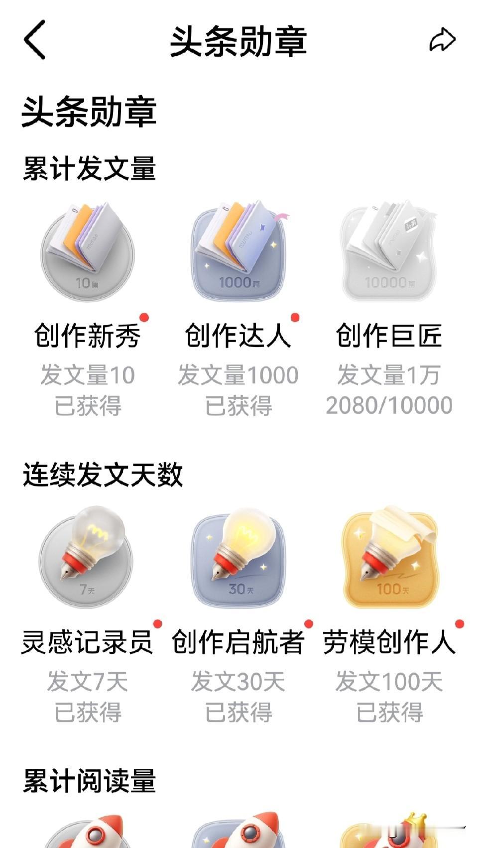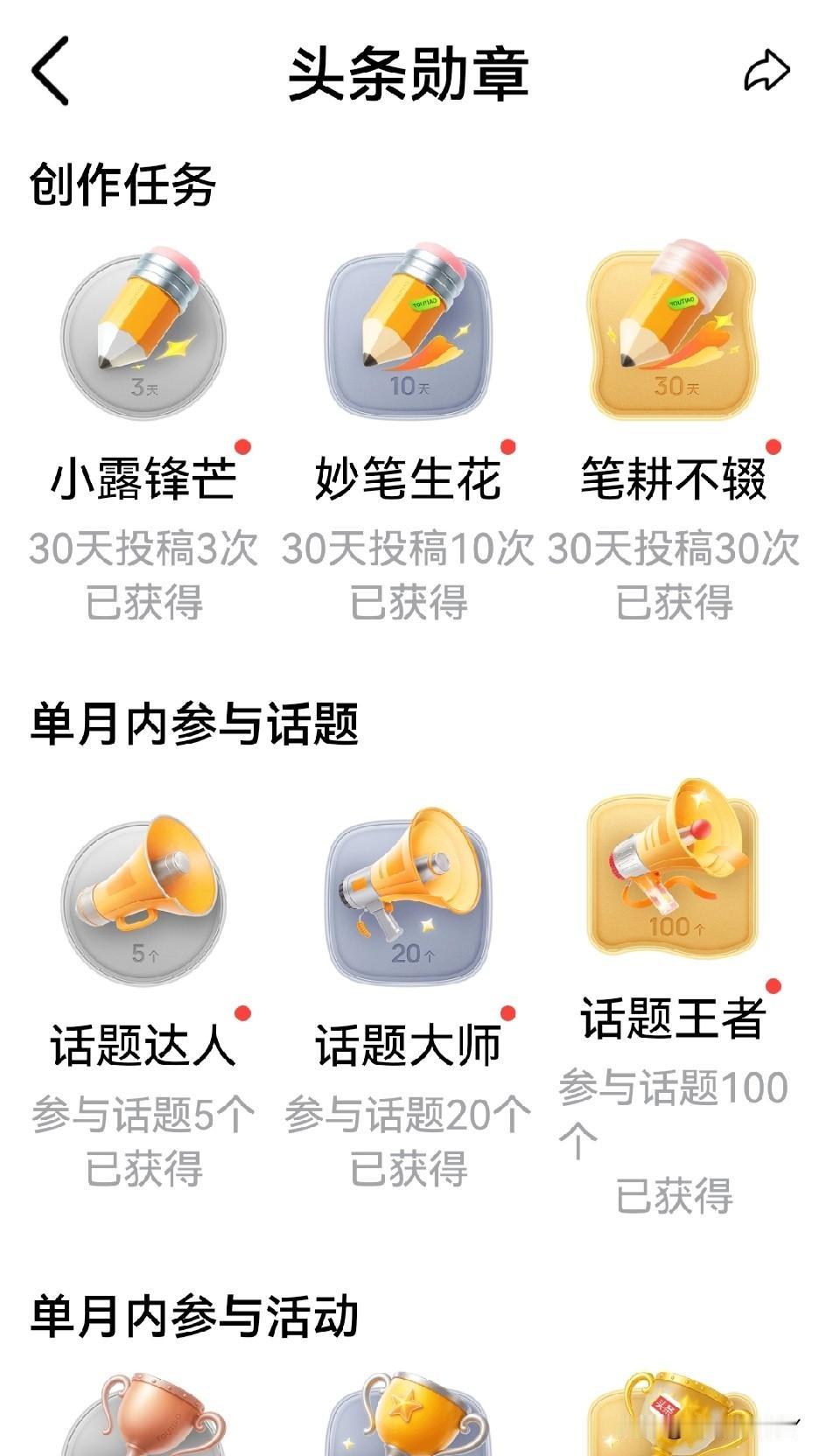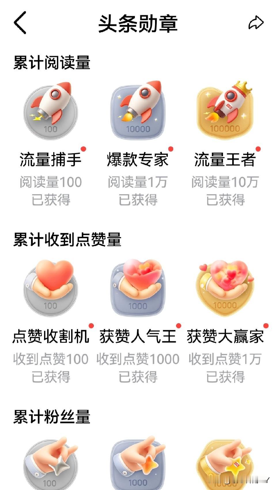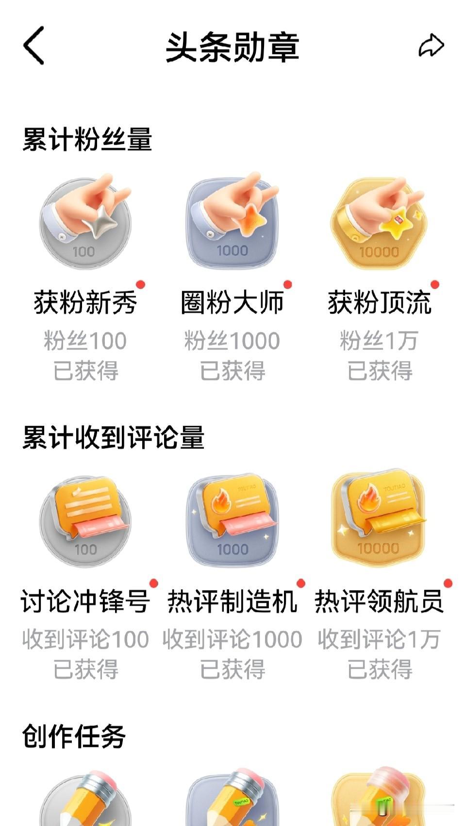 头条首页悄悄更新啦! 新悦创作者下方新增了勋章数量显示:我目前攒了26枚~ 点进创作中心主页,能看见新增添了勋章墙。 主页勋章墙上,每枚勋章的获取时间、发文天数、粉丝数量都标注的清清楚楚,明明白白,记录着创作路上的每一步。 不知网友们是否发现了这个新变化,你们都解锁了多少枚勋章呢?来评论区聊聊~
