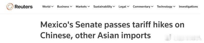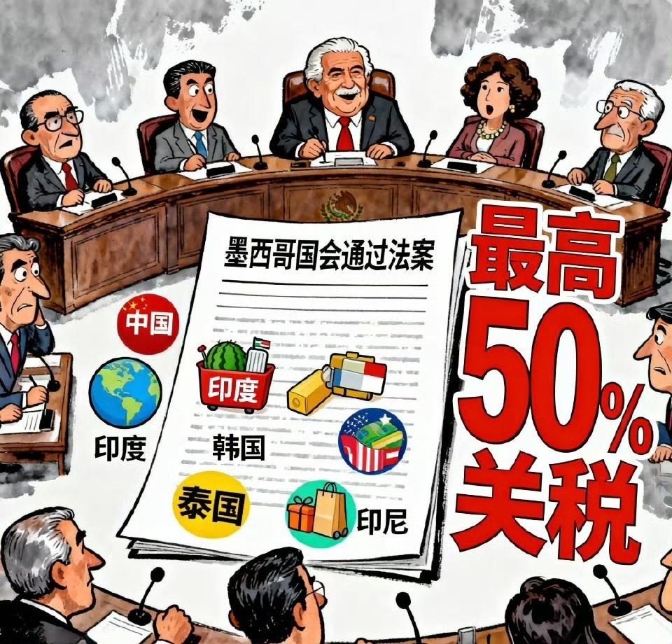 墨西哥对华加税,歪风必刹,立威正当时! 12月10日,墨西哥参众两院正式通过关税法案,敲定自2026年1月1日起,对中国等未签署自贸协定亚洲国家的近1400项商品加征10%至50%分级关税,涵盖汽车、纺织、钢铁等关键领域,涉及贸易额超520亿美元,表面以“保护本土产业”为幌子,实际上是明目张胆的为讨好美国人对华针对性打压,背弃双边经贸合作共识的背信弃义之举。这种无视国际贸易规则的单边操作,绝非无关痛痒的政策调整,若放任纵容,只会让反华歪风愈演愈烈,中国必须坚决反制、绝不姑息。 一、墨西哥的挑衅本质上是战略误判与投机算计的叠加。从协议履约来看,中墨多年来保持互利经贸合作,墨方此举直接违背双边贸易合作的基本准则,打破双方长期维系的经贸互信;从实力认知来看,美国尚且不敢对中国随意加码关税施压,墨西哥却妄图借着依附美国供应链的心态蹬鼻子上脸,完全错估了中国维护自身权益的决心与能力。 中国作为全球稀土、多种关键矿物和零部件核心生产基地,掌握产业链绝对主动权,而墨西哥制造业发展对稀土资源存在实质依赖;若启动对墨西哥稀土出口管控,正是直击其产业命门的精准反制手段,足以让其为挑衅付出惨痛代价。 二、墨西哥的发难并非孤例,此前马来西亚、柬埔寨与美国签署贸易协定时,已悄然纳入反华“毒丸条款”,条款暗藏“配合美国制裁、限制对华合作”的隐性约束,本质是美国裹挟市场围堵中国的霸权操作。 更值得警惕的是,这两个国家与中国的贸易往来规模远超美国,2024年中国与东盟贸易额近万亿美元,柬埔寨对华出口依赖度、马来西亚对华产业合作深度均远超对美往来,却仍选择屈从美国压力损害中方利益,典型是畏威不怀德的短视之举;这既背弃了与中国互利共赢的合作根基,也让自身陷入被美国绑定的战略被动。 三、墨西哥加税此类接连出现的反华操作,核心是部分国家误将中国的温和克制当作软弱可欺。长期以来,中国秉持多边主义理念,始终以包容态度推动国际经贸合作,却被一些势力解读为“可随意拿捏”,进而接连触碰利益红线。 事实上,温和绝非无底线妥协,对于损害自身核心利益的行为,中国从来都有足够反制手段。当前这股依附美国、针对性反华的歪风必须立刻刹停,快速拿出“杀鸡儆猴”的强硬反制,才能让投机者认清现实,打消其侥幸挑衅的念头。 四、当下的国际格局,在以美国为首的西方势力主导下,丛林法则思维持续蔓延,单边主义、霸权主义不断冲击多边贸易体系,一味温和退让只会陷入被动吃亏的困境,中国已然到了必须坚定立威的关键时刻。 所谓立威,不是要主动挑起对抗,而是面对挑衅时绝不手软,用精准有力的反制捍卫自身权益;也不是放弃多边合作,而是划清中国贸易红线,让所有国家明确“挑衅必受惩”的底线。面对墨西哥的关税挑衅,我们要拿出实打实的反制举措,让其为背弃协议付出代价。当前面对各类反华投机行为,要持续强化自身产业与资源优势,精准打击,筑牢权益保障的硬屏障。 西方煽动的丛林法则下,实力才是话语权的核心,温和需有底线。墨西哥对华加税的错误行径,正是敲打各方的重要契机,中国必须坚决反制、亮出硬气,才能遏制反华歪风扩散。形成任何妄图触碰中国红线、损害中国利益的行为,都将自食恶果、得不偿失的吓阻态势。