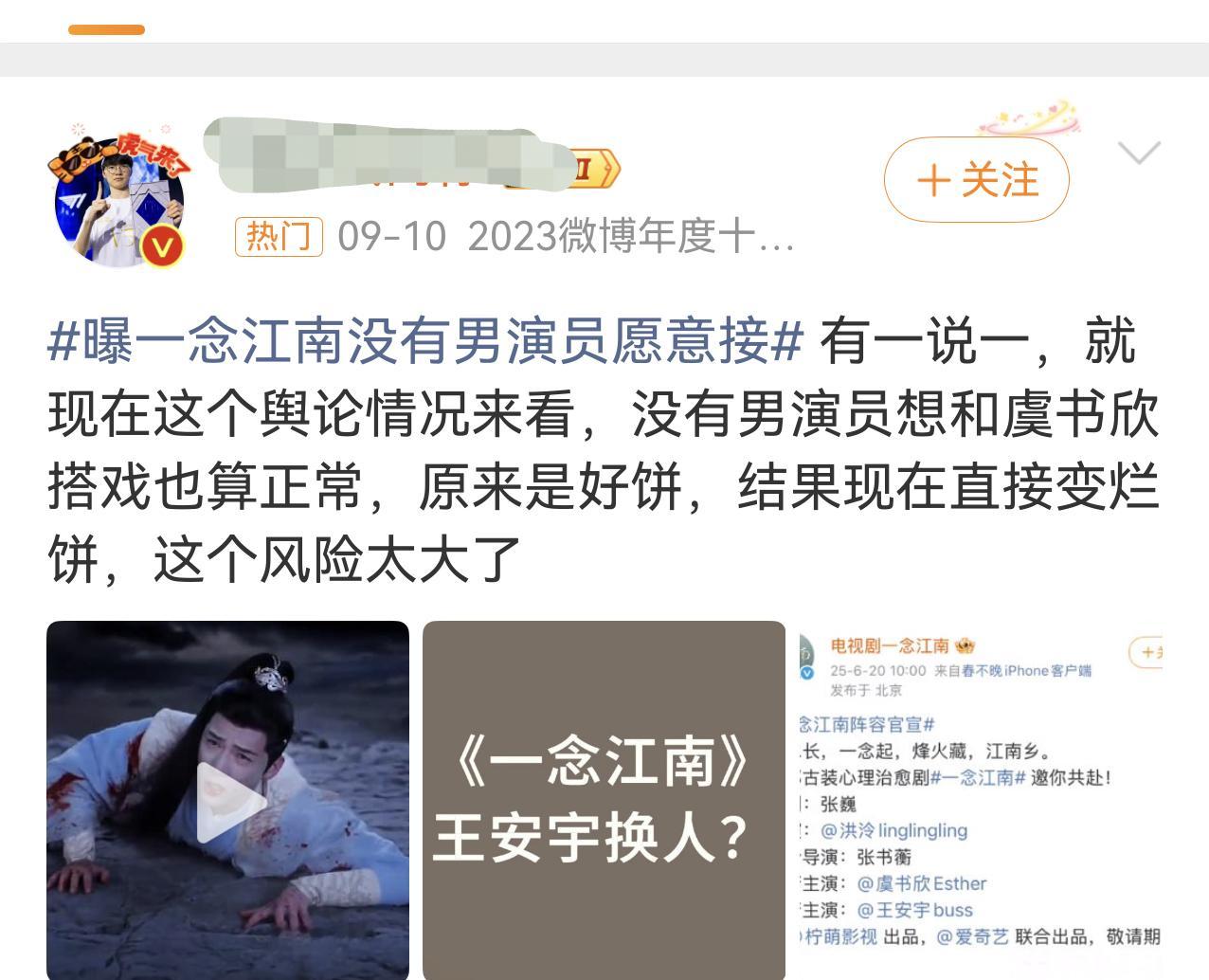 一念江南只保留了男主角王安宇哈?前段时间不是还出来落井下石说男主为了规避风险主动退出一念江南,现在又上演王安宇力挽狂澜拯救剧组的戏码,所以到底演不演啊......