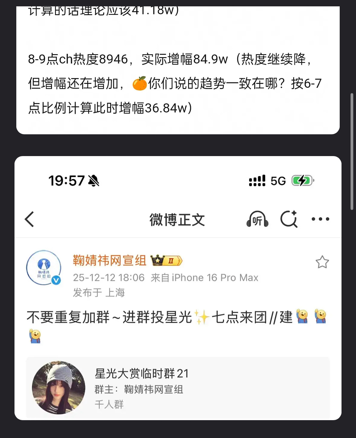 郫县全是鞠婧祎的嘿贴说人家星光大赏星光值对不上结果他们怀疑涨幅不对的那段时间正好是鞠姐官方号召的时间,总体曲线和趋势都一致,正好给鞠姐佐证是非常真实的数据