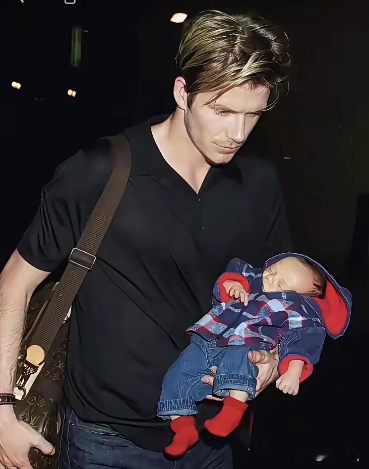小贝夫妇臂力惊人,都是单手抱娃,看着轻松又时尚。这哪是在抱娃,更像是拎着一个时尚单品。