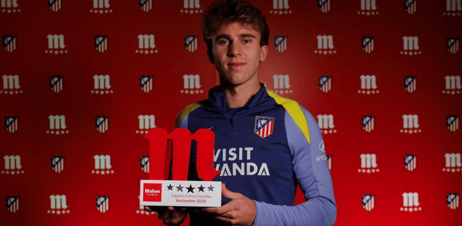 虎扑12月13日讯巴勃罗-巴里奥斯被评选为马德里竞技11月份的最佳球员,该奖项由马竞球迷投票选出,使这位青训球员获得了俱乐部赞助商马霍五星球奖。