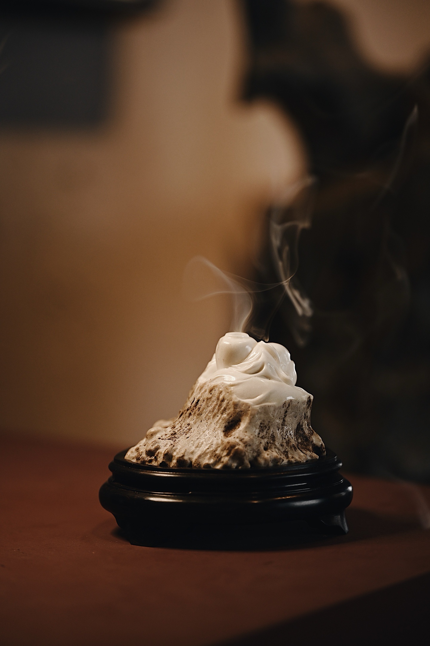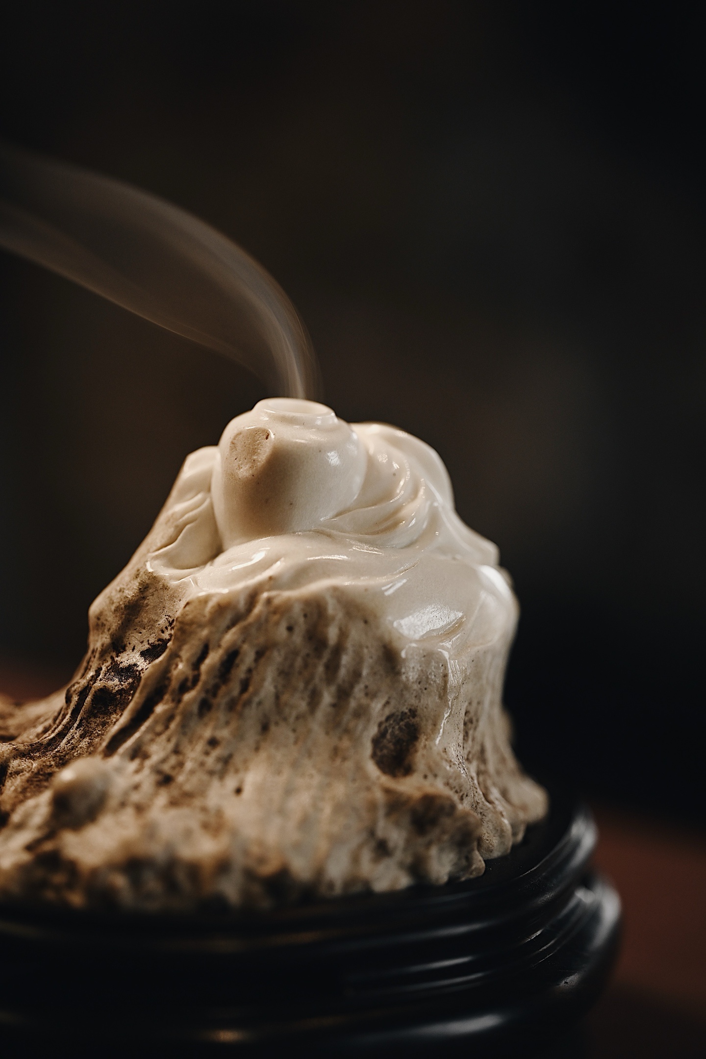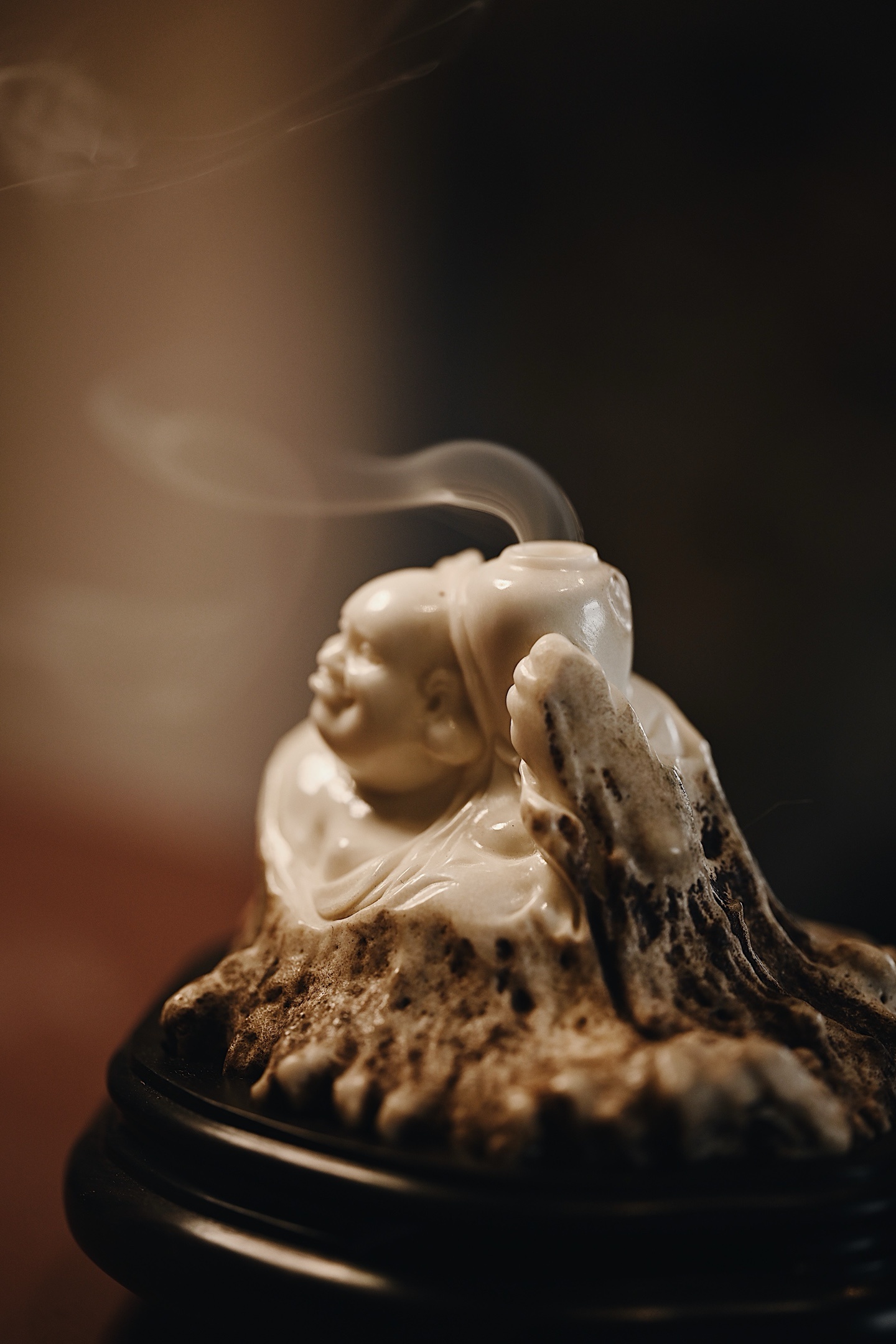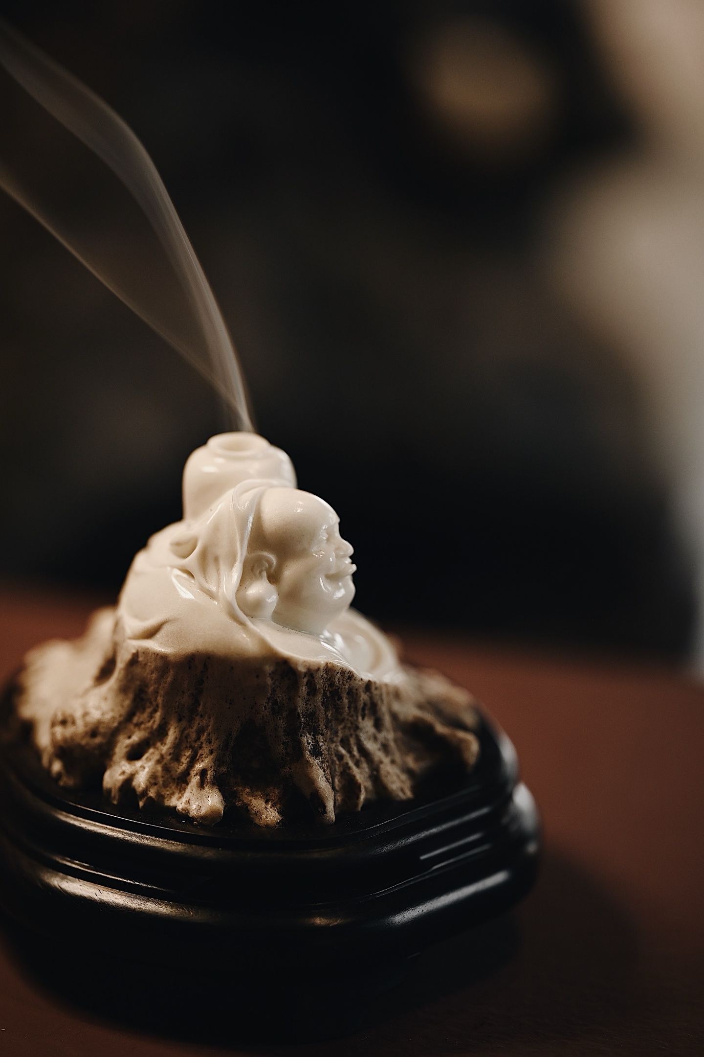 鹿角 | 欢喜弥勒 香炉料质清润,雕刻弥勒笑意盈盈,焚香出烟,一派仙风道骨之韵。
