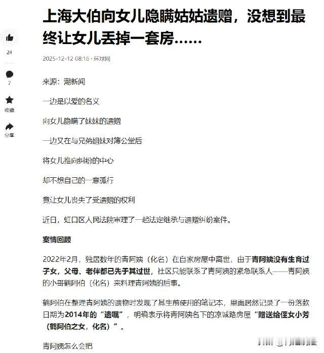 在繁忙现代的上海,一场关于亲情与遗产的纷争悄然展开。男子的父母相继去世后,原本亲密的五兄弟姐妹却因遗产分割问题渐生嫌隙,他唯一维系感情的是与小妹的往来。谁料,小妹突然离世,男子负责料理后事时,却从她留下的日记本里发现一份重要秘密——小妹把家里的房子留给了自己的女儿。 为了避免与其他兄弟姐妹掀起新的纷争,更为了保护小妹的爱女,男子选择了隐瞒这份遗嘱和小妹去世的消息。起初,这个秘密似乎让家庭保持了表面的和平,然而,阴影终究无法掩盖。 一年后,大哥意外得知真相,召集兄弟姐妹开始争夺小妹的遗产。面对突如其来的爆炸性消息,其他兄弟姐妹对那本日记——这份“遗嘱”真实性存疑,拒绝接受其合法效力,激烈的家庭纠纷一时难以平息,最终闹上法庭。 这件事反映的不仅是遗产分割的法律问题,更折射出复杂的人性和亲情考验。面对亲人的离去,珍惜血缘情感与法律权益的平衡,难道就只能通过争吵撕裂吗?男子的选择看似隐忍,究竟是保护还是逃避?兄弟姐妹们的质疑,是出于利益还是对真相的执着? 在现代社会,多数家庭都面临类似的“遗产陷阱”:权利与感情的拉锯,信任和背叛的交织。当遗嘱以日记形式存在时,法律如何判定其效力?亲情能否超越金钱,成为化解纷争的关键? 网友热议:“亲情本该无价,遗产却让人丢失了理智。”“如果当初能坦白沟通,或许这结局会不同。”“法律是规则,但家庭更需要的是宽容和理解。” 这场关于遗嘱与遗产的争夺,提醒我们:面对亲人的离世,诚实和透明或许是保护家人唯一的护身符。遗嘱不只是字句,更是亲情的延续;而家庭的真正财富,是相互间的理解与关爱。 母亲的遗嘱继承 家庭立遗嘱