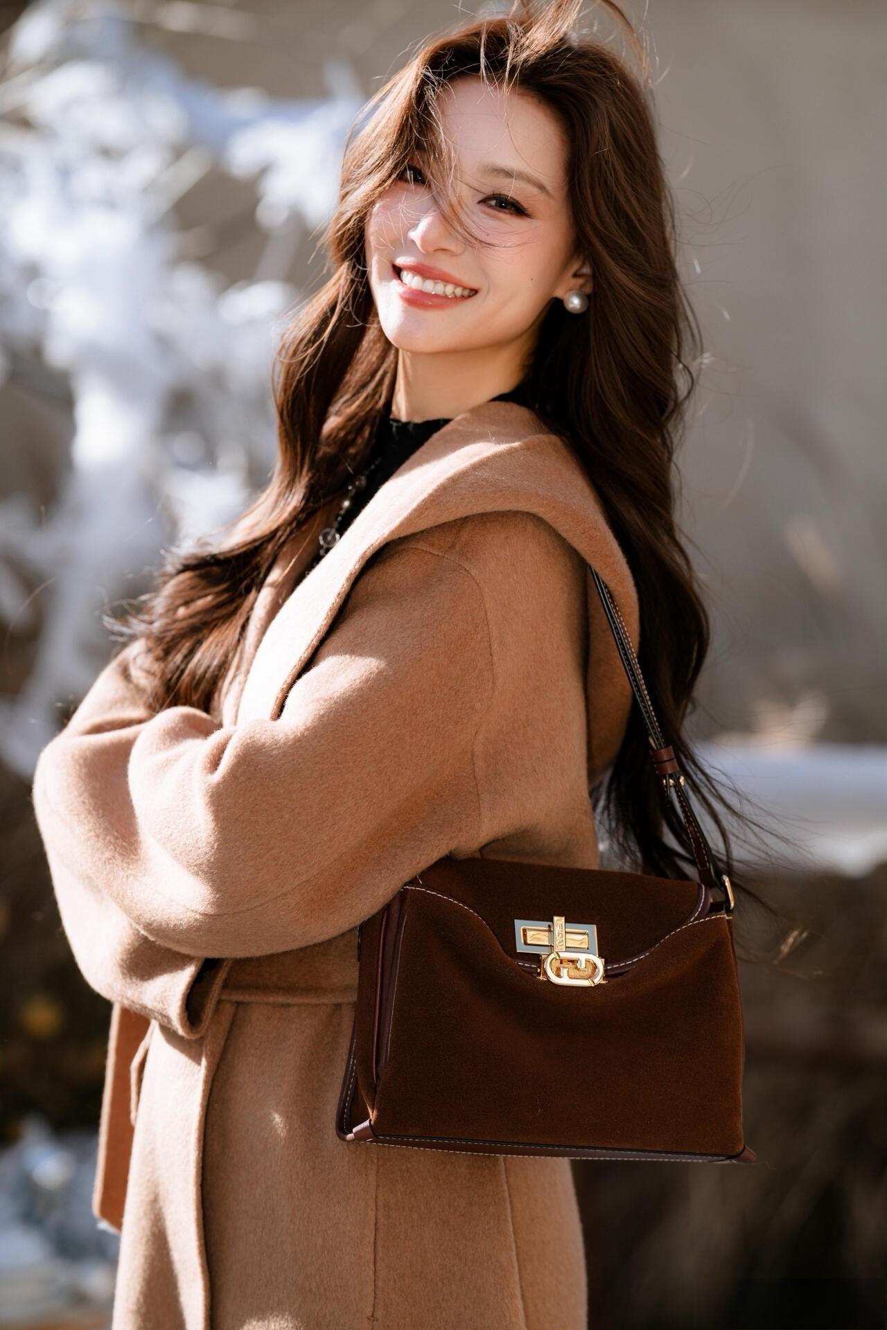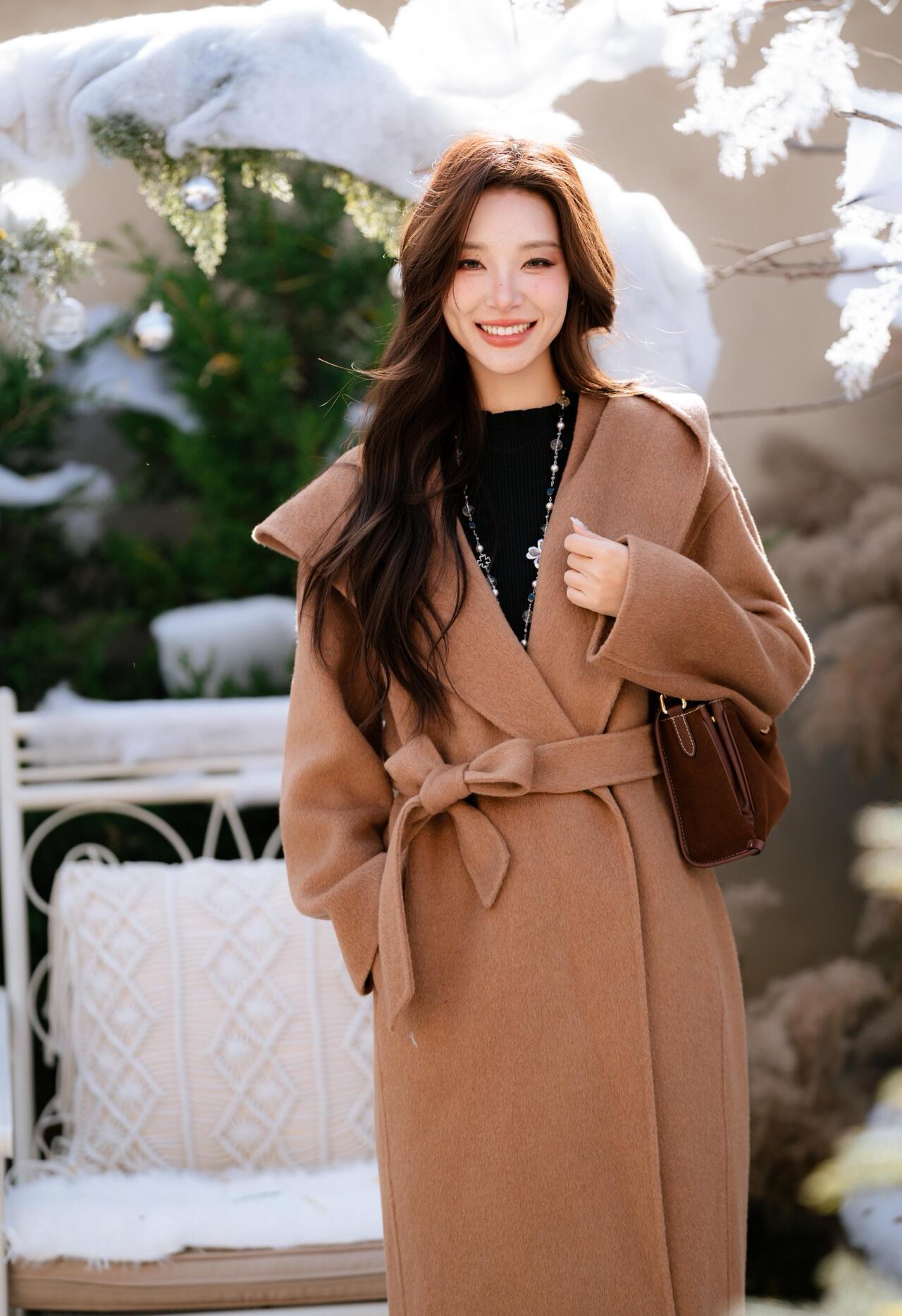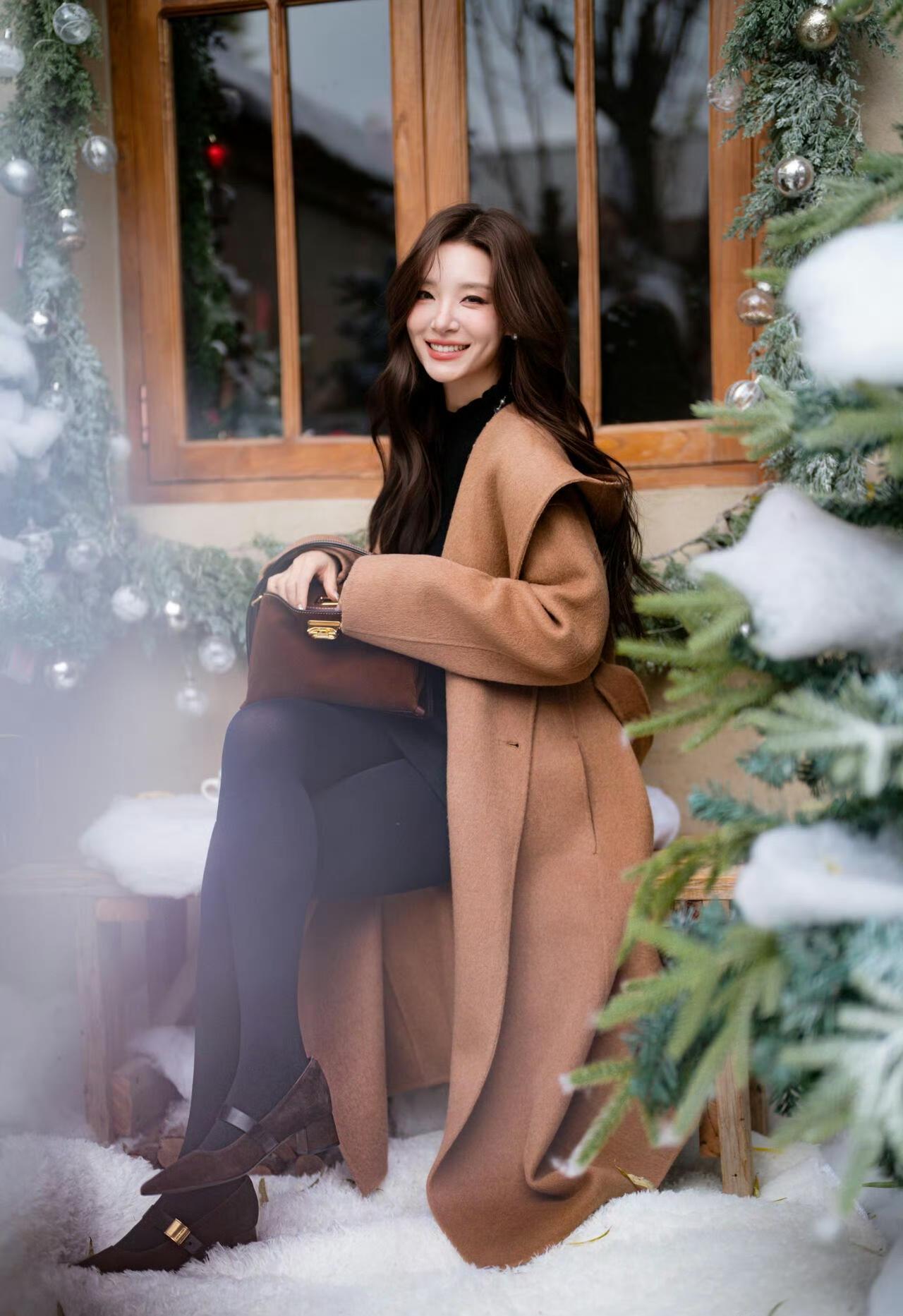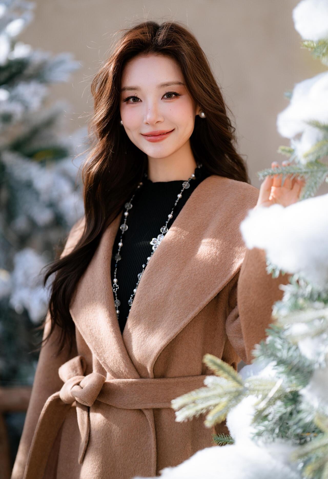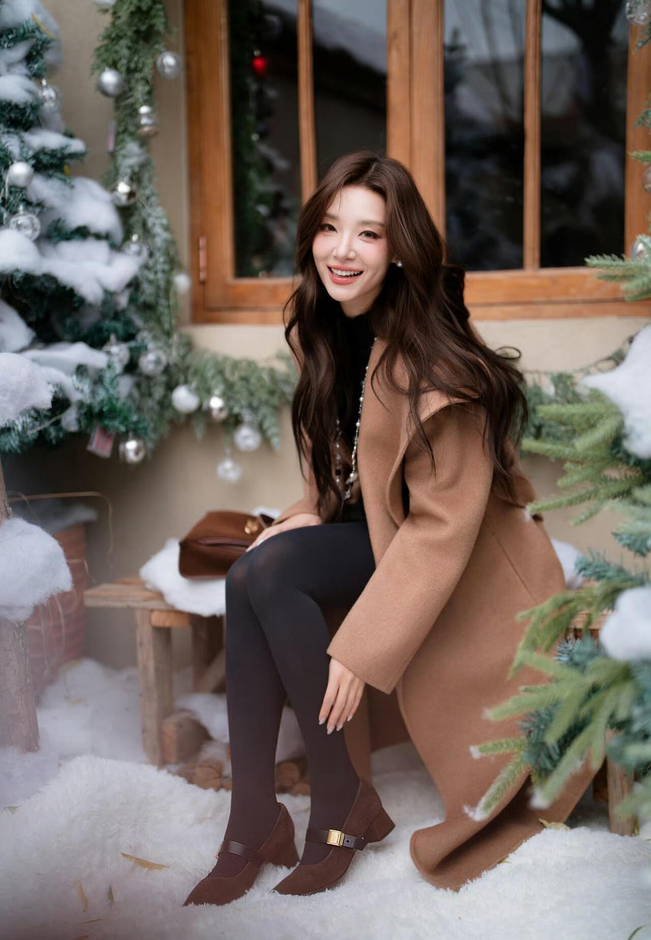 这套穿搭是温暖高级的冬日驼色氛围风,适配圣诞季的温柔质感拉满。驼色长款大衣自带冬日温暖氛围,大翻领设计更显优雅;内搭全黑打底,简约基础款突出了大衣的质感,让色彩层次更和谐。 同色系棕色包包与大衣呼应,强化了整体的温暖调性;带金属扣的棕色鞋履精致复古,与配饰项链形成细节呼应,提升了造型的精致度。能充分展现穿着者温暖高级的冬日氛围魅力。经典驼色穿搭 驼色系搭配 浅驼色羊绒大衣