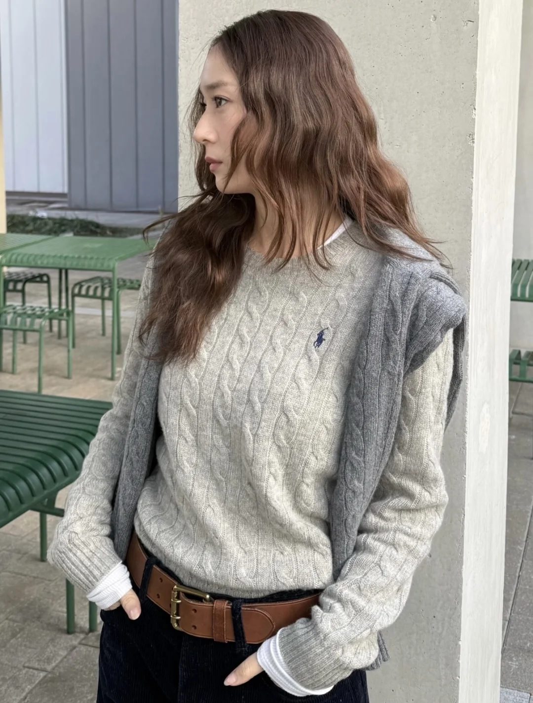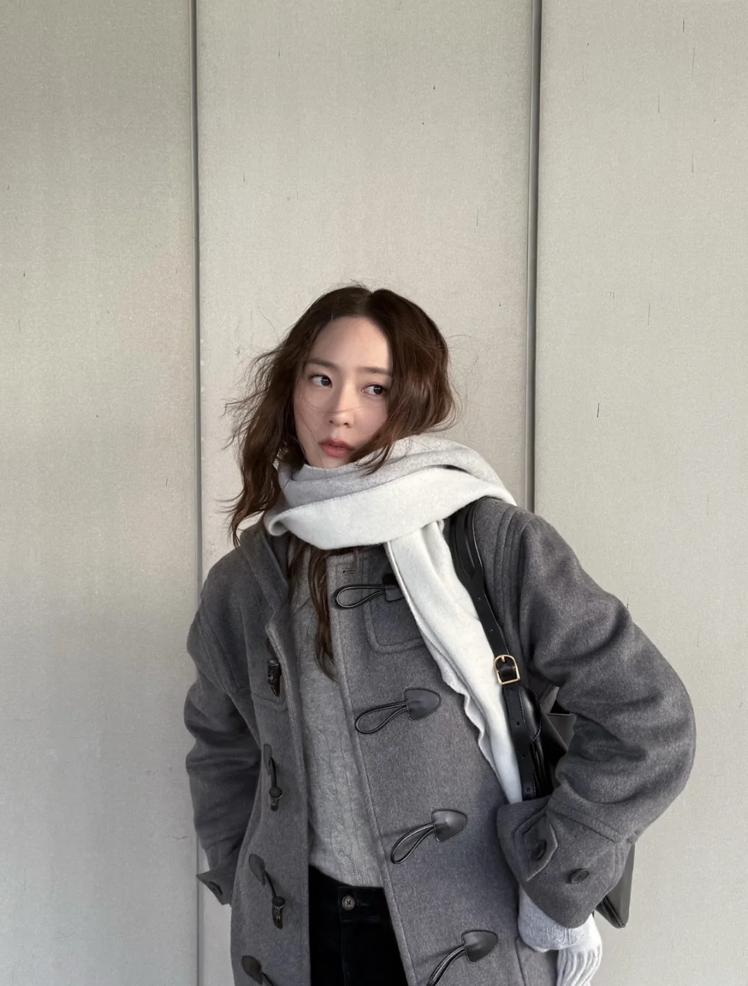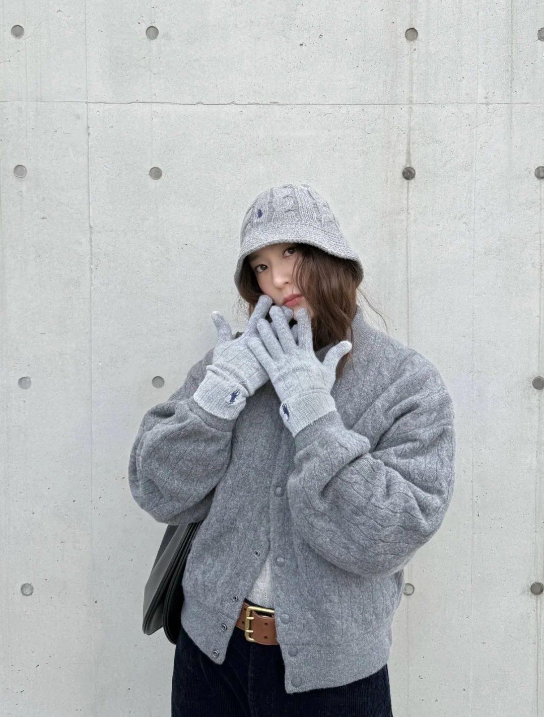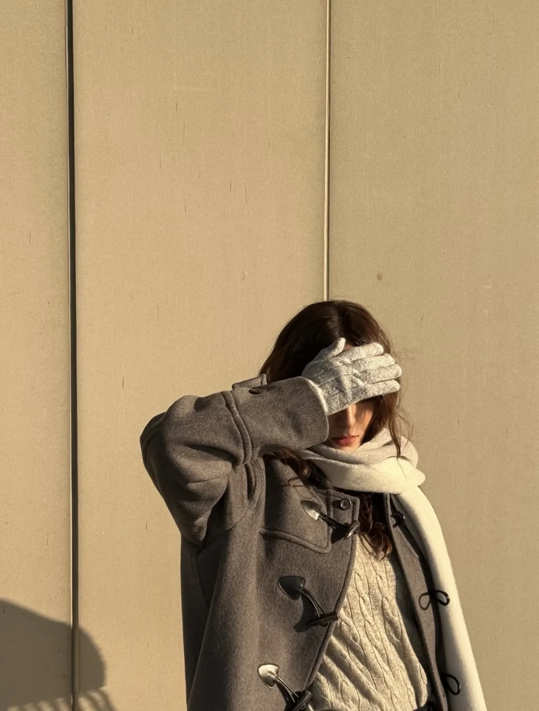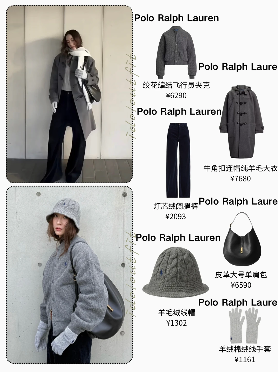 郑秀晶太会穿拉夫劳伦了! 牛角扣大衣内搭灰色针织,浅白围巾做提亮,把美式经典的Ralph Lauren穿出了韩系清冷氛围感。 重点是同色系叠穿的技巧:不同灰度的灰色层次分明,黑色下装压稳整体,配饰选同品牌针织帽、手套,细节呼应让造型更完整,这穿搭思路直接抄作业!