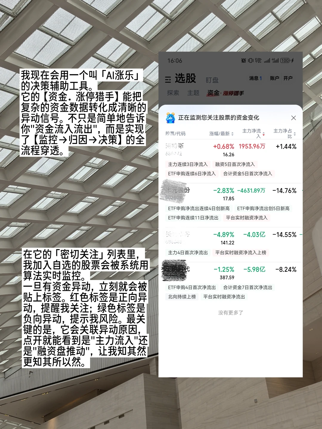 「AI涨乐」 是决策辅助工具,它的 「资金·涨停猎手」 功能,能把复杂的资金数据,转化成清晰的异动信号,给出更具参考性的选股策略。