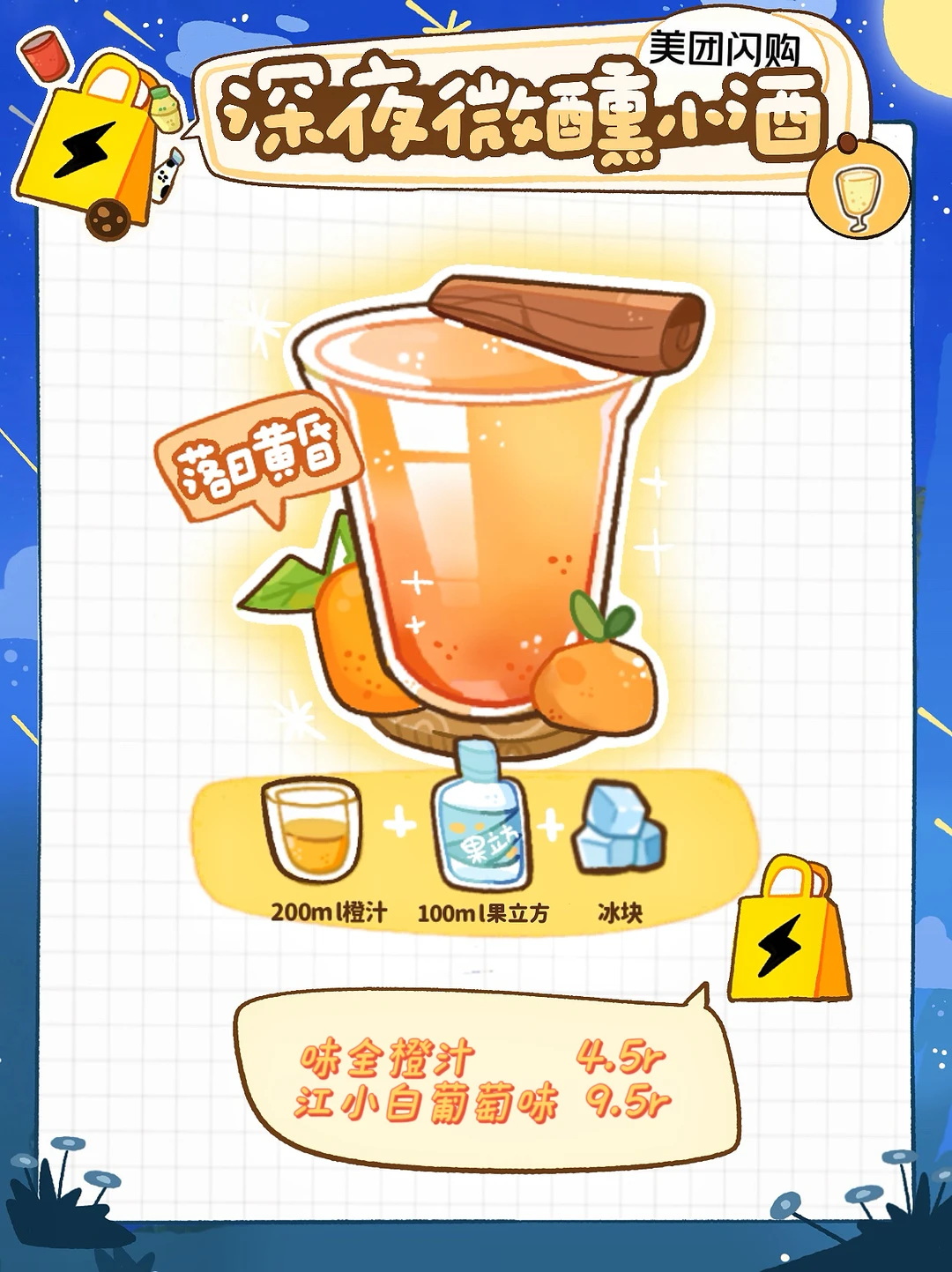 200ml橙汁➕100ml葡萄果立方➕冰块🧊