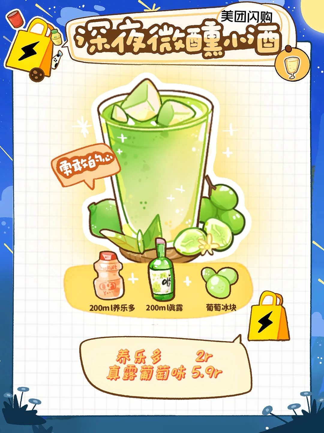 200ml养乐多➕葡萄味真露➕葡萄冰块🧊
