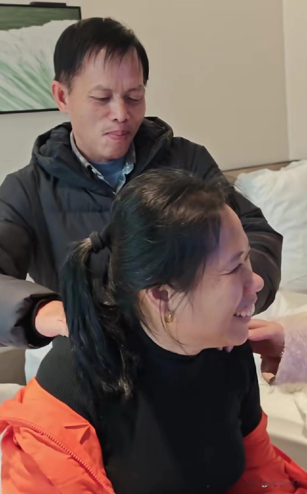 梁志辉爸爸妈妈目前的状态太幸福了,每个镜头他们都是在欢笑着。志辉妈妈有肩周炎,这是她长期工作劳作留下来的隐患。志辉爸爸给老伴按摩肩膀有模有样,一会按,一会揉,一会又敲击起来。 志辉妈妈此前在广州打工,每天要工作12个小时能赚到10000块钱,这笔收入要给梁爸拿去寻找儿子和用作家庭的开销。 高强度的劳作给她的身体留下了病痛。现如今,大儿子梁志辉找到了,她不用那么辛苦了。现在,梁妈和梁爸已经进行了多场直播带货,大概率以后,她不用再去打工了。