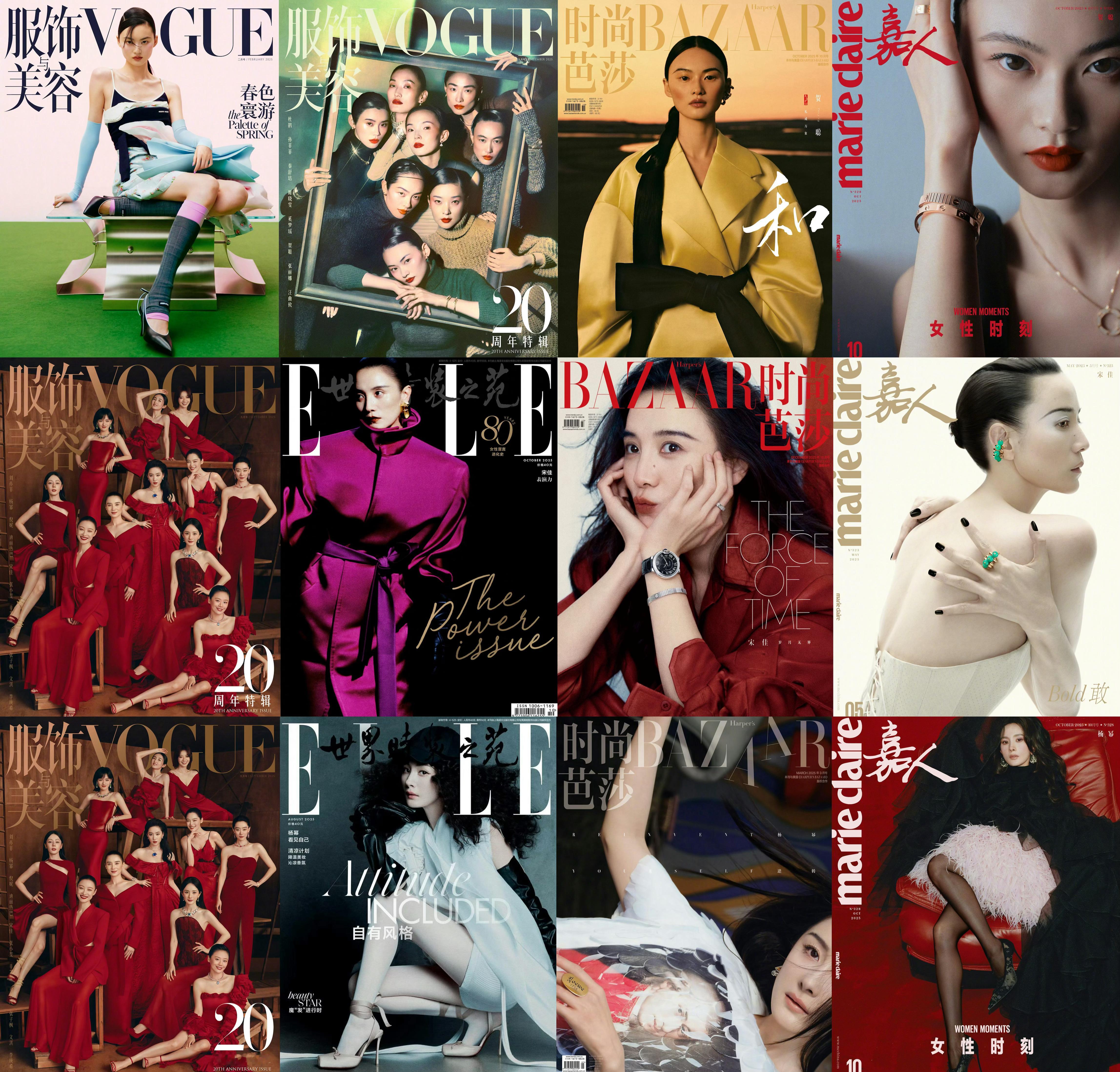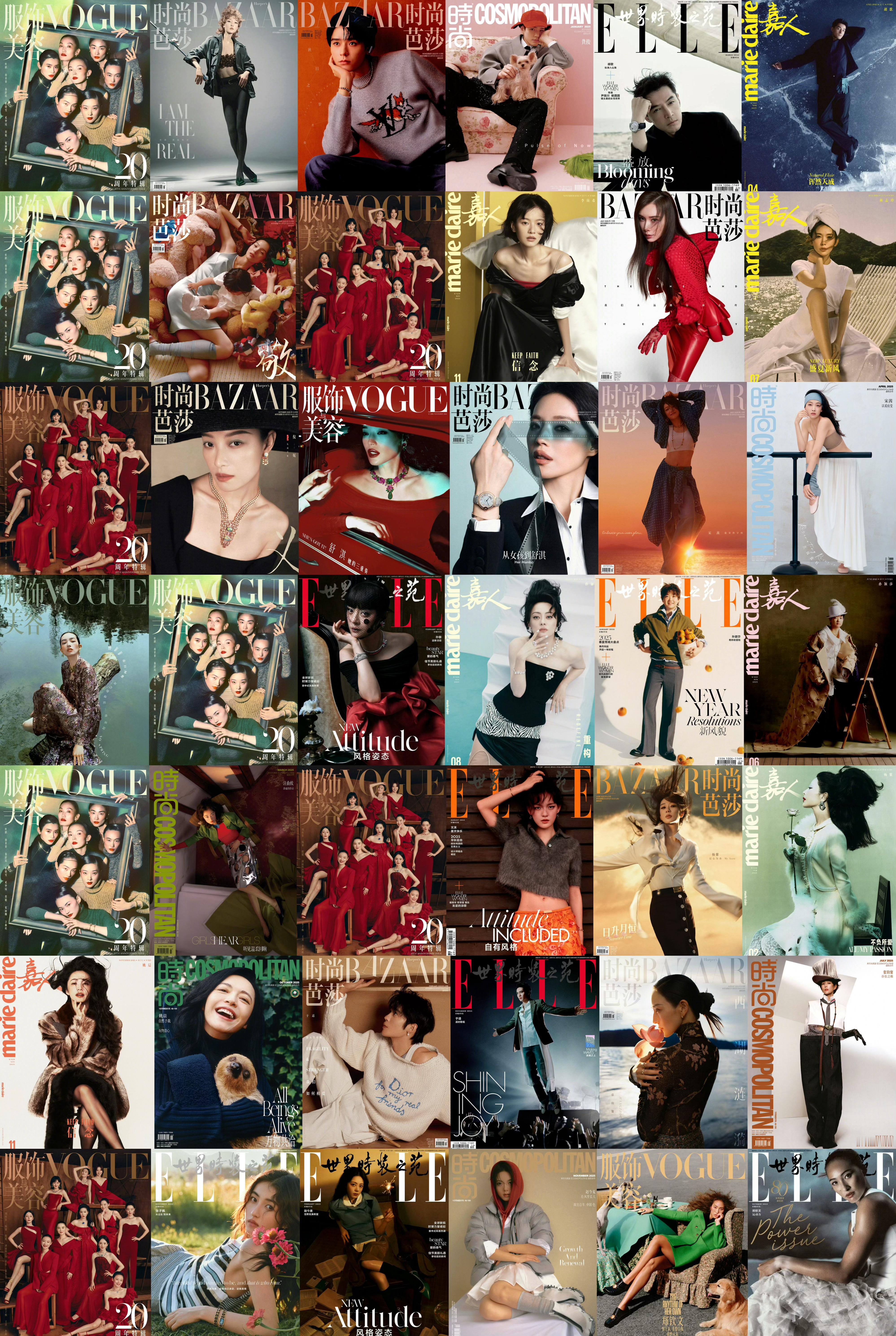 2025年度封面盘点 —— 五大女刊数量榜单六刊:辛芷蕾四刊:贺聪、宋佳、杨幂三刊:迪丽热巴、李宇春、刘诗诗、刘雯、刘亦菲、檀健次、王嘉尔、张小斐、张丽娜、钟楚曦、周冬雨两刊:杜鹃、龚俊、胡歌、雎晓雯、李庚希、林志玲、倪妮、舒淇、宋茜、孙菲菲、孙俪、孙颖莎、汪曲攸、文淇、杨紫、姚晨、于适、张钧甯、张子枫、赵今麦、郑钦文