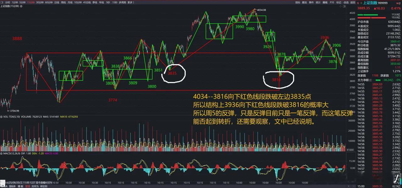 从15分钟周期结构研判,今日A股大盘展开向上反弹走势。回溯前期趋势,指数自393
