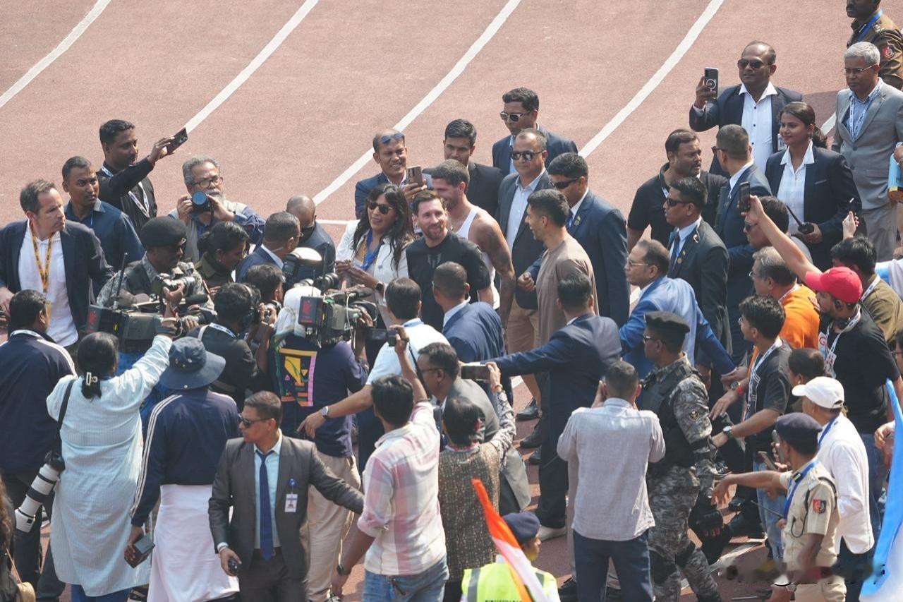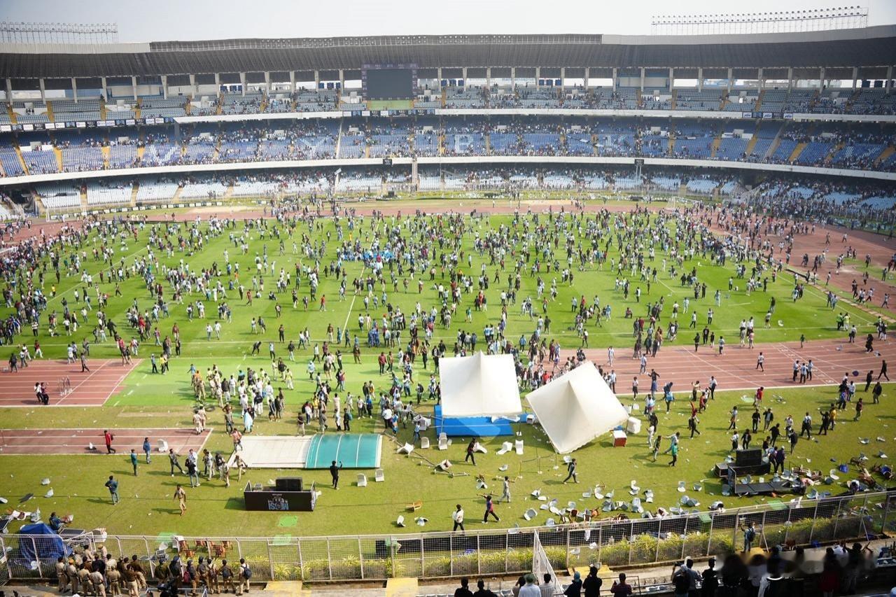 又是一场闹剧,梅西的印度行乱成一团糟了! 本来梅西开开心心的去印度进行商业活动,不仅可以挣点零花钱,还能扩大自己在印度的影响力,本以为是一举两得的事情,万万没想到印度的官方真的是太业余了,把梅西的印度行搞得一团糟,遭到了不少印度球迷的抗议。 梅西的周围全围满了印度的达官贵人,花了钱买了票的球迷连梅西得到影子都看不到,导致球迷愤怒不已,不仅对当地官员发出嘘声、丢水瓶,而且还有大批球迷冲进场内对体育场进行破坏,最终梅西只在球场站了不到十分钟就匆匆离开了。 梅西估计已经后悔来印度了,早知道印度乱没想到会这么乱,真的是钱难挣屎难吃啊,还不如安安稳稳的在迈阿密沙滩上晒日光浴。