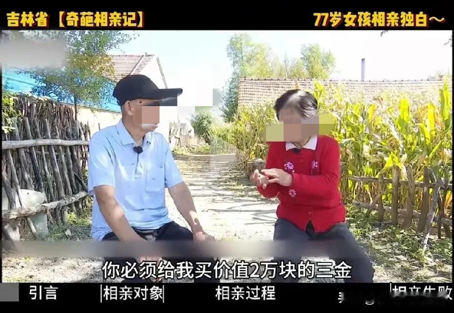 笑不活了,77岁老仙女奇葩相亲记。77岁大妈丧偶,儿女成家,自己一个人生活,想找个饭票。虽然她77岁了,但是她还以少女自诩,说自己清纯可爱,男方要是有想法交往,需要准备88个,还要🈶三金,没有三金也要给2万块钱。 听了她的条件,大爷目瞪口呆,问她是来相亲的还是来许愿的,他可不是菩萨,无法帮她实现。 大爷说你还是找其他人吧,我这把老骨头经不起折腾。