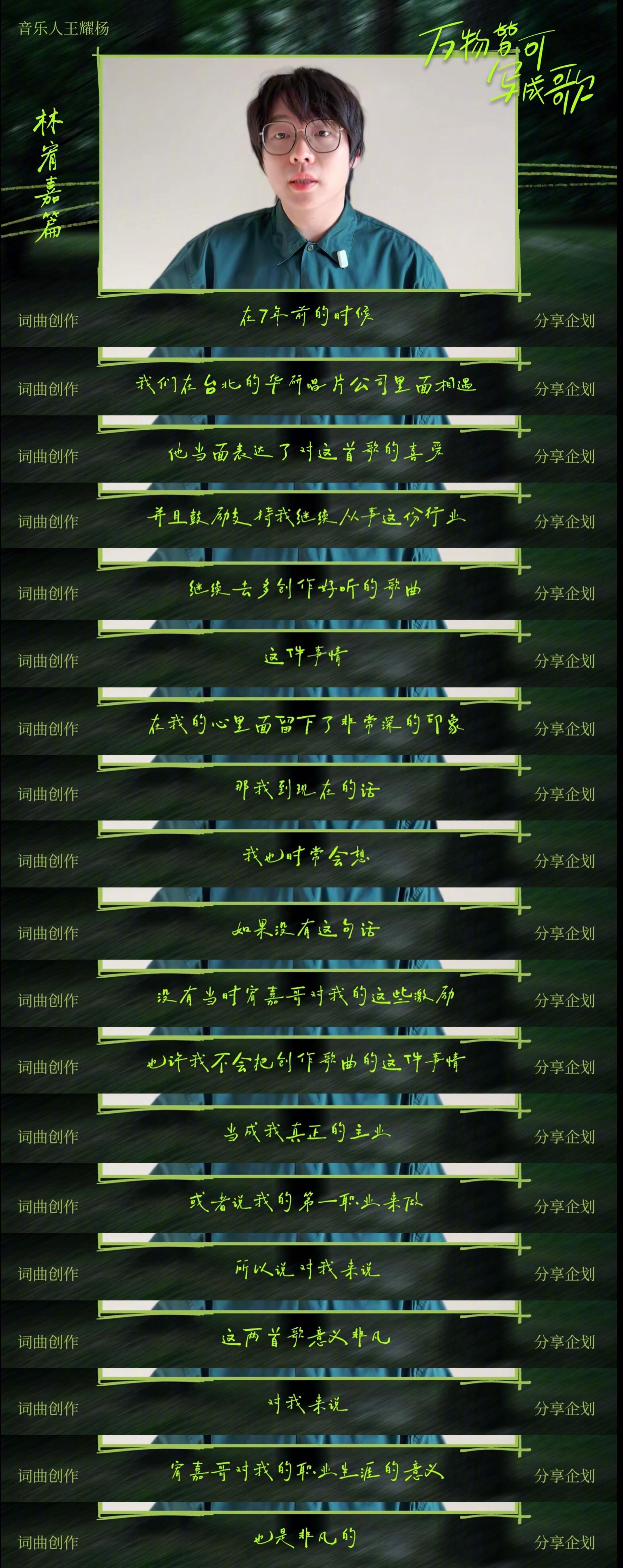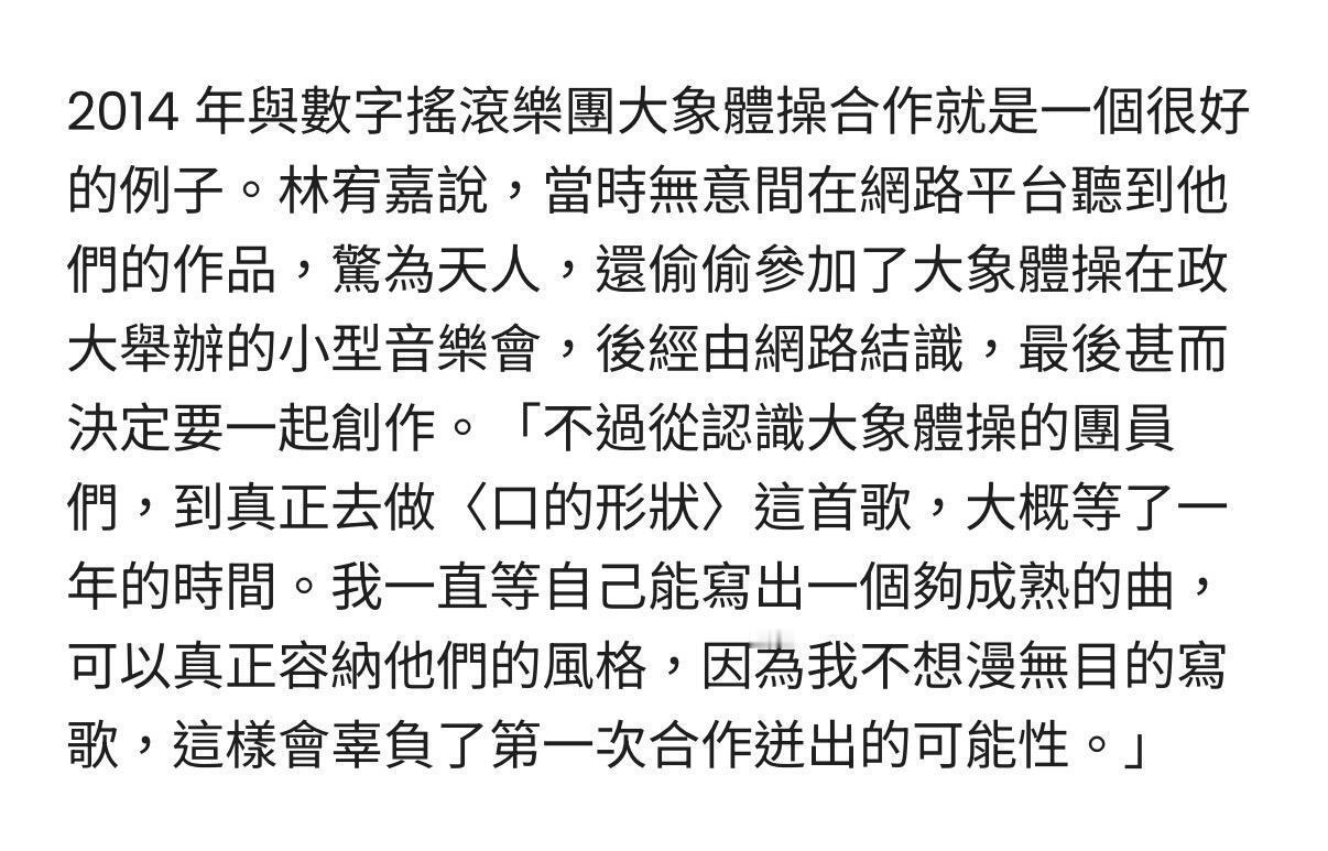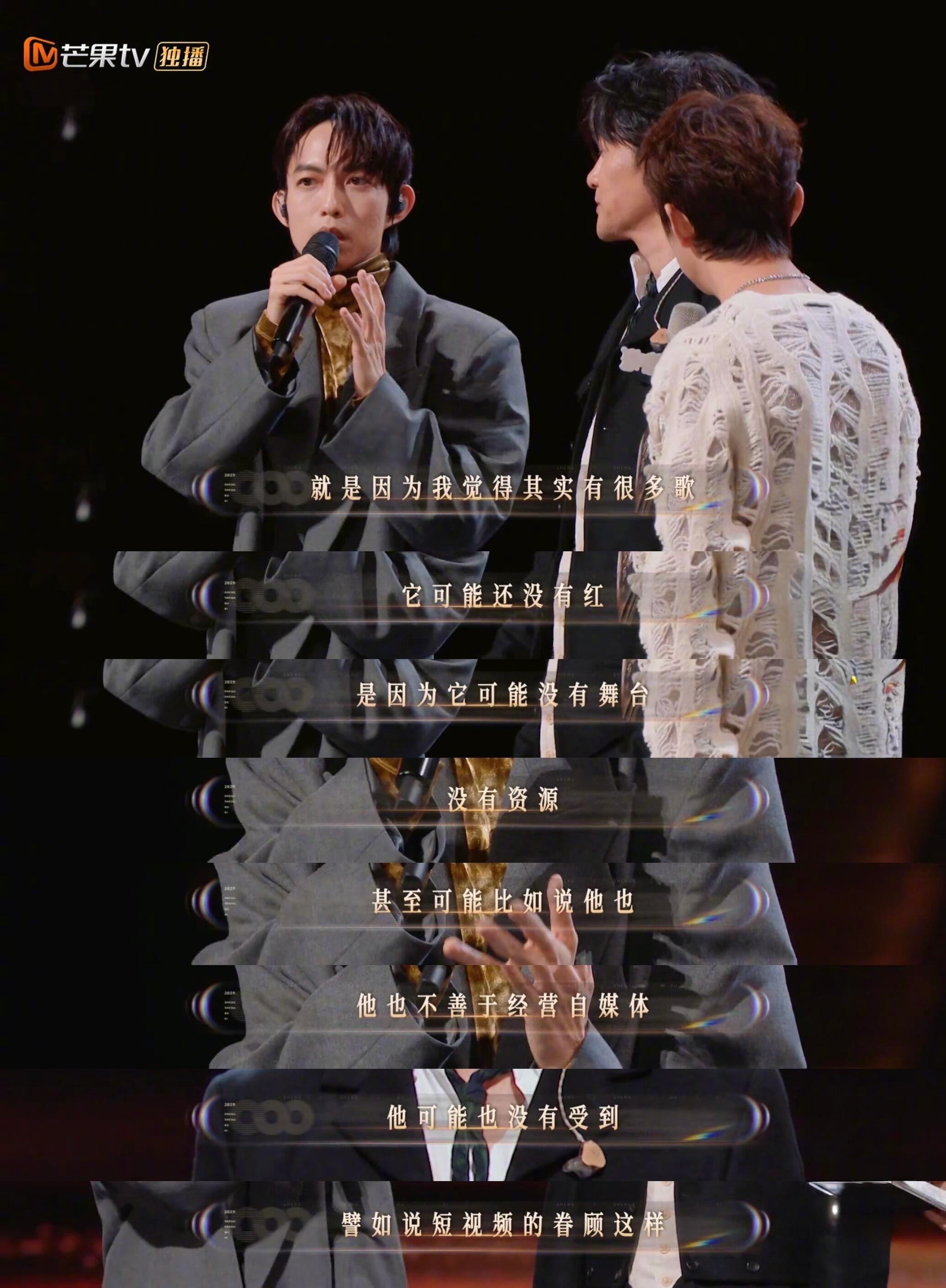 林宥嘉,把光照向别人的歌手在《声生不息》中,林宥嘉的举动再次打动众人。他特意准备了一份歌单,里面收录那些因缺少舞台或流量而被埋没的好作品,希望通过自己的演绎,让这些音乐人被看见。这份善意并非偶然。2013年,他邀请新人乐团“大象体操”共同编曲、同台演出,带他们站上红馆与小巨蛋;他曾认真回复林家谦的私信,促成合作,也给对方带来坚持创作的信心;七年前他就鼓励王耀杨继续写歌,如今新专辑里正式收录了他的作品。从选手到歌手,林宥嘉始终记得被人点亮的感觉。如今站在光里,他选择转过身——把光,照向更多的人。